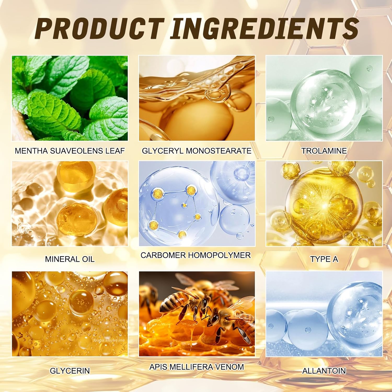 - Clean & Safe for Sensitive Skin: Our Bee Venom Cream is made with high-quality natural extracts, gentle and non-irritating, ensuring safe and effective care for your skin. This product is suitable for all skin types, including sensitive skin