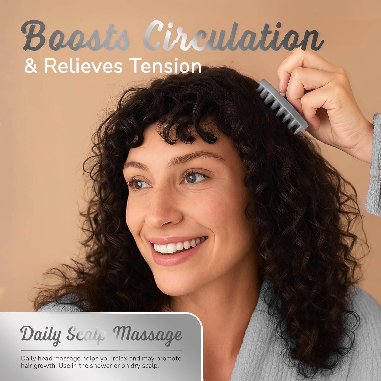 - Non-slip ergonomic handle for easy control — a balanced, palm-fitting grip stays steady in wet, soapy hands and works with either hand, giving you a relaxed, consistent scalp massage every time.