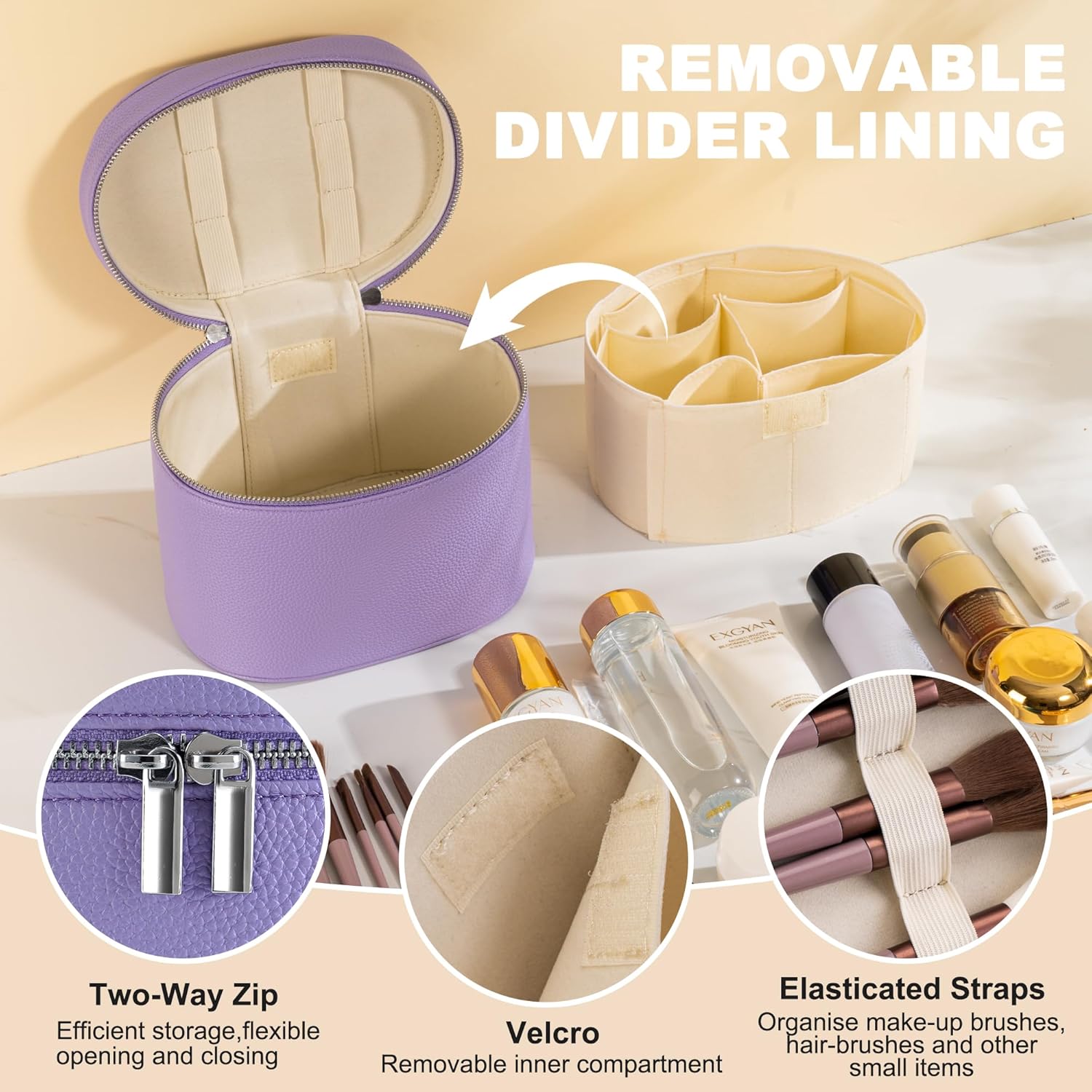Makeup Bag Vanity Case Cosmetic Bag with Removable Divider Travel Toiletry Bag for Women Portable Make up Box Organizer, Purple