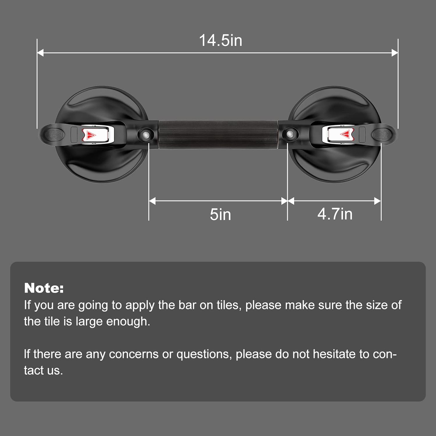 - 🌴【Buying Guides】 ① The grab bar is to be used only to assist and help support properly a person's body, Never apply full body weight. ② The mounting surface of the grab bars for elderly suction must be flat, non-porous, and smooth. And measure tiles and the distance between them prior to purchase as suction cups cannot overlap the grout line. ③ Check the stability of the suction cup periodically. Use with caution and test-proof the suction of cups before use.