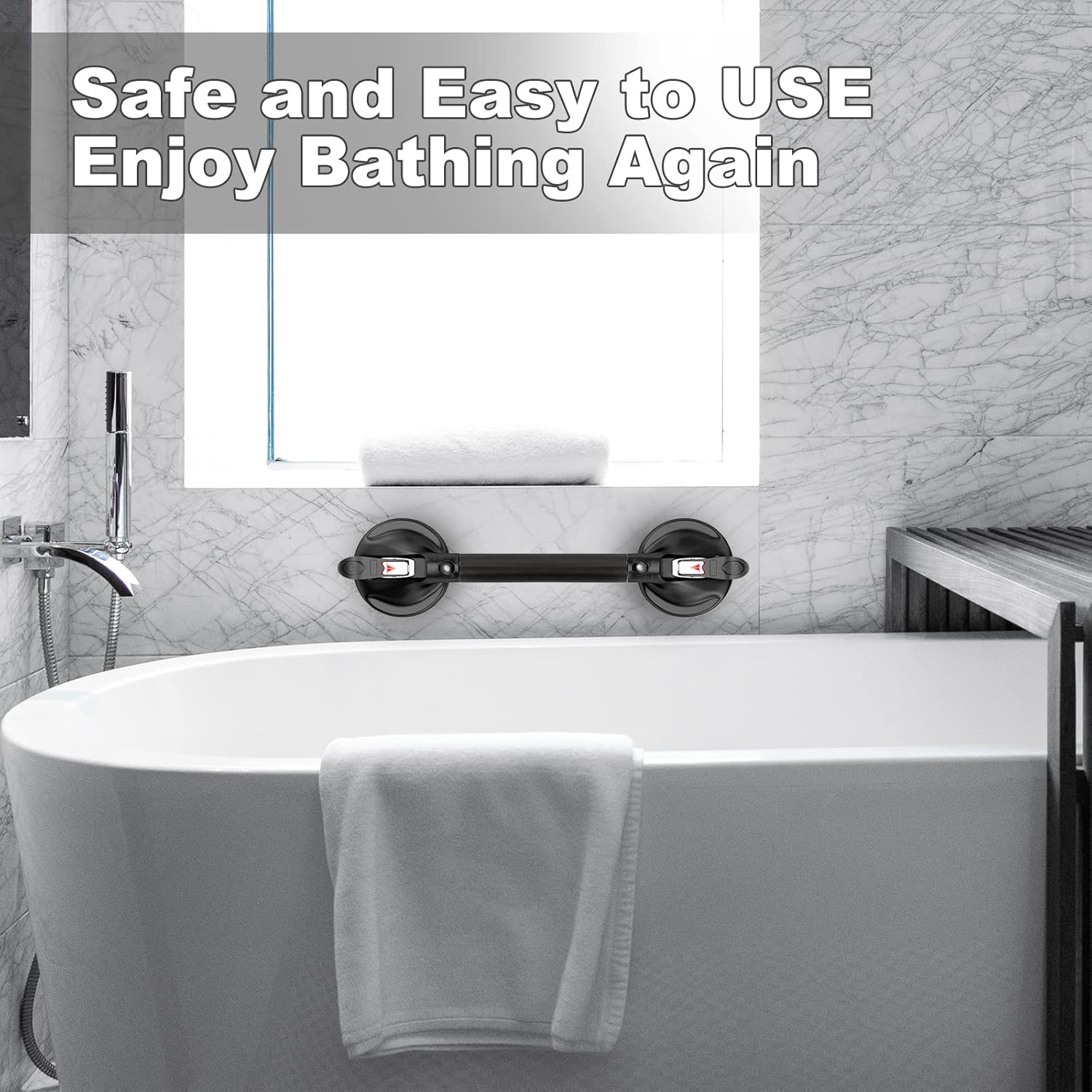 15-Inch Shower Handle - Upgraded Grab Bar with Strong Suction Cups for Bathtub & Shower Safety, Ideal for Seniors, Elderly, Disabled - Black