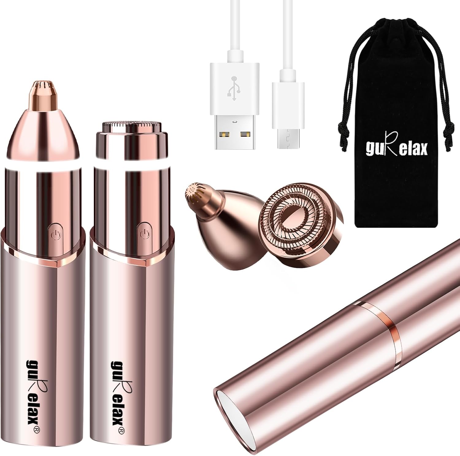 Gurelax Facial Hair Remover, Personal Groomer for Women(2025 Luxury 2 in1), Gentle and Quick, Electric Eyebrow Facial Trimmer for Chin, Lip, Face, Nose