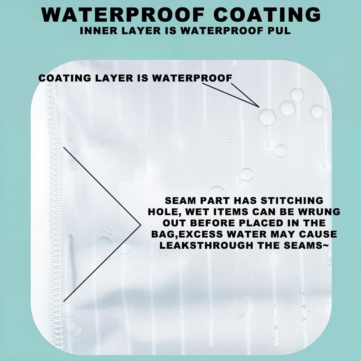 - Waterproof: Machine washable, reusable and water-resistant, very light. That wet items must be wrung out before placing them in the bag, excess water may cause penetration or seam leaks. Warm Tip: The bag is not completely leak proof due to zippered closure.