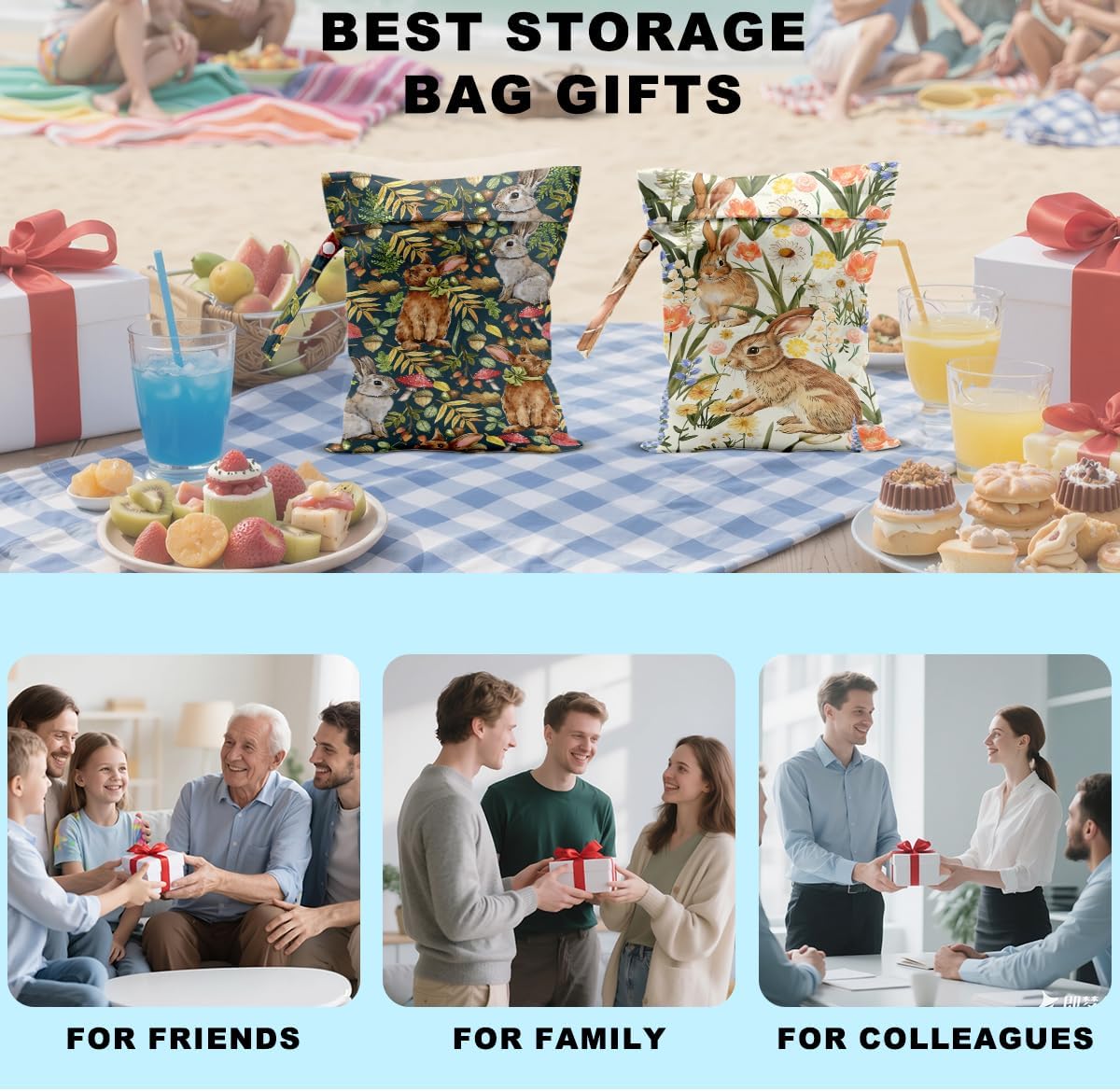 2Pcs Bunny Wet Bag 12x10 Inch, Rabbit Waterproof Reusable Wet Dry Bags, Floral Washable Travel Laundry Bags for Swimsuit Pool Beach Diapers Dirty Yoga Gym Clothes, Flowers Gifts for Women Friend
