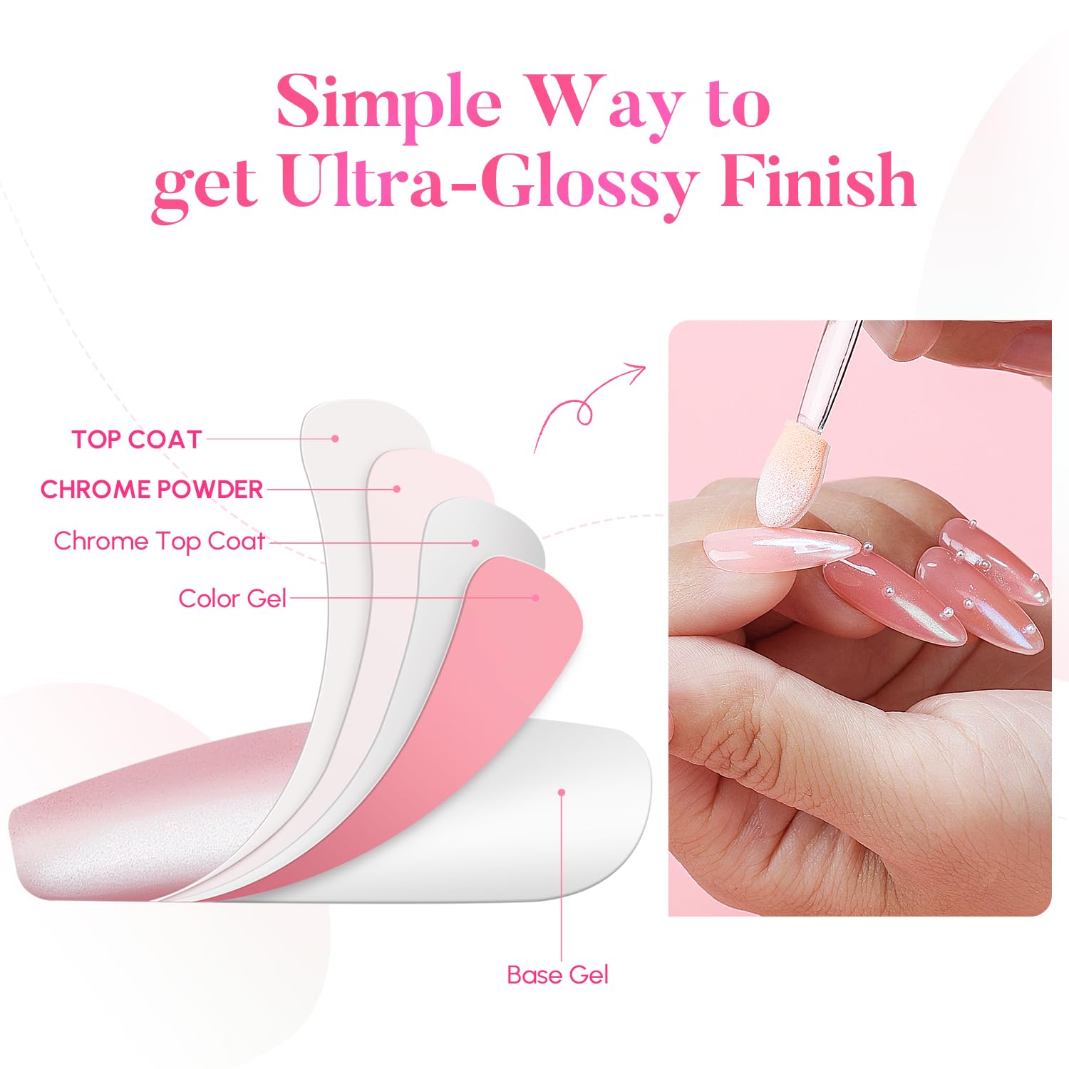 - Package Included: 12 Jars Nail Powder with 12 pcs eyeshadow sticks. Needs to be used with gel nail polish and no wipe top coat for chrome powder, which is not included in this kit.