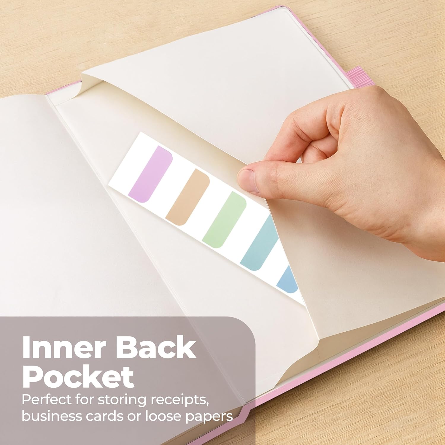 - DESIGNED WITH FUNCTIONAL FEATURES – Stay organized with built-in back pocket for storing receipts, business cards, and keepsakes. The elastic closure band keeps pages secure on the go and the ribbon bookmark makes it easy to find important sections. A pen loop so your writing tool is always handy. Plus, it also comes with free sticky tabs to mark pages, organize sections, and quickly find your most important notes!