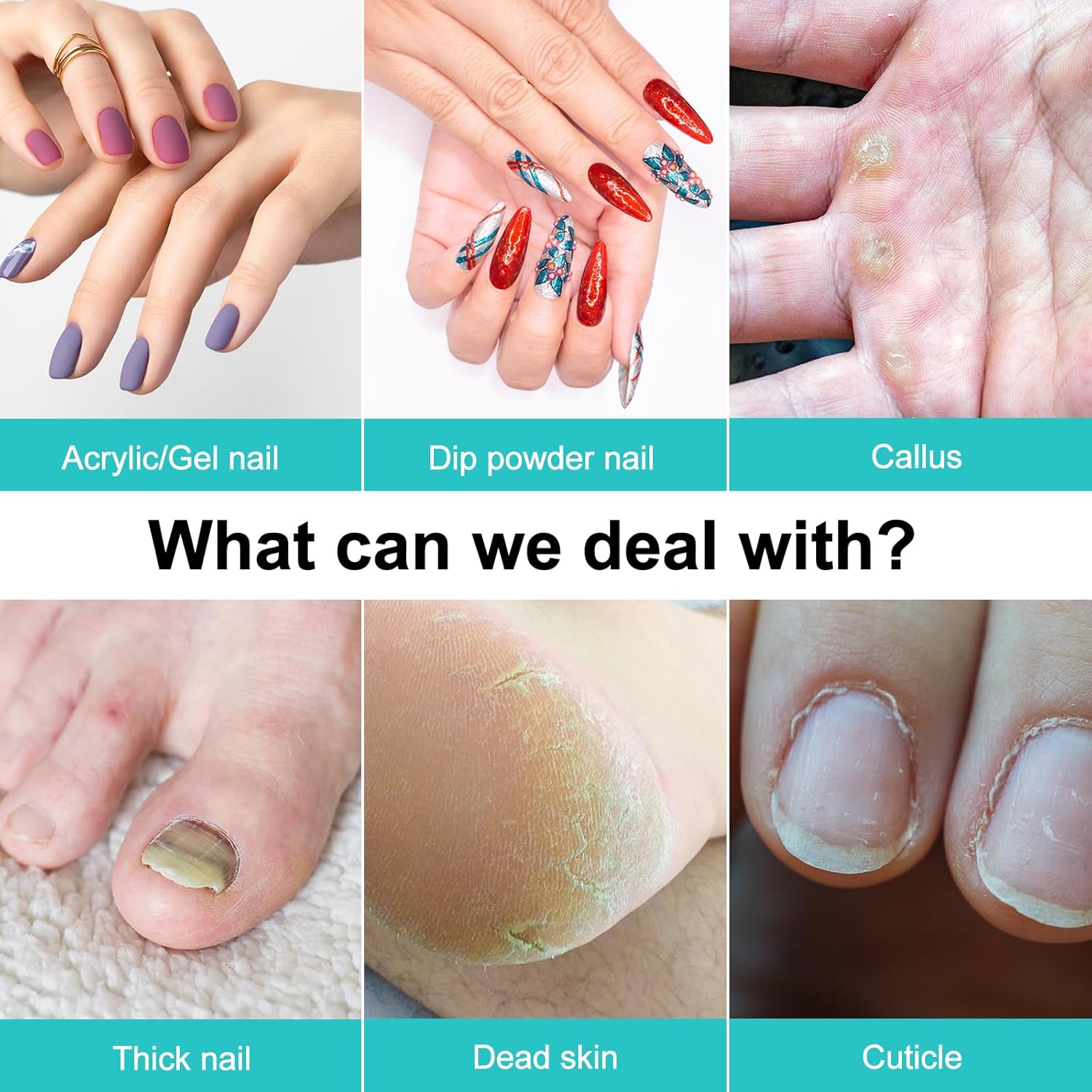- Multifunctional for Manicure & Pedicure: With adjustable speeds and forward/reverse direction options, this nail drill machine comes with various professional grinder bits, you can customize your various manicure and pedicure routine to your liking