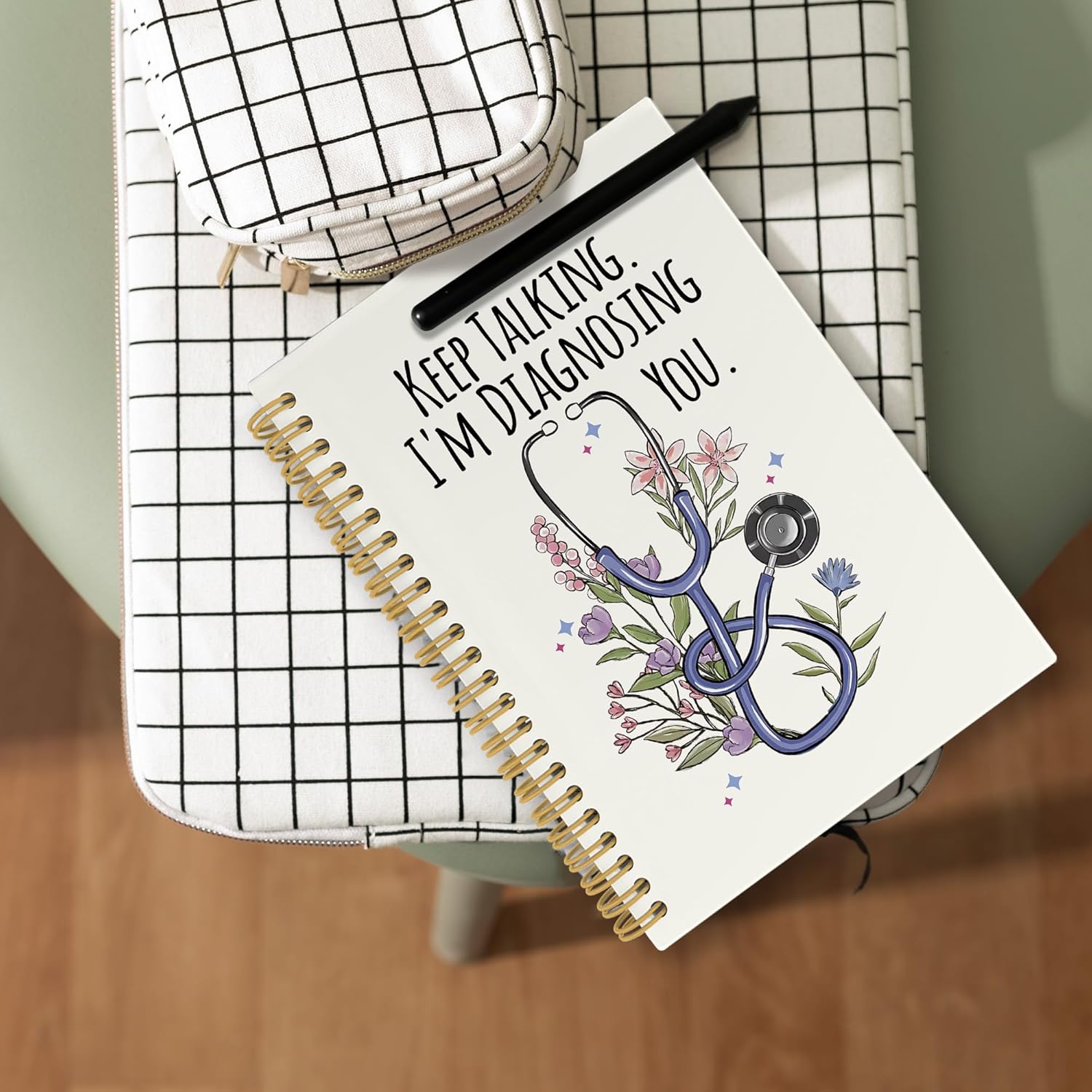 CUANFDDSF Therapist Gifts Notebook, Therapy Journal Notebooks for Women, SLP Speech Therapy Gifts,Writing Pads,Keep Talking I'm Diagnosing You Stethoscope Floral Hardcover Spiral Notebook 5.5x8.3 Inch