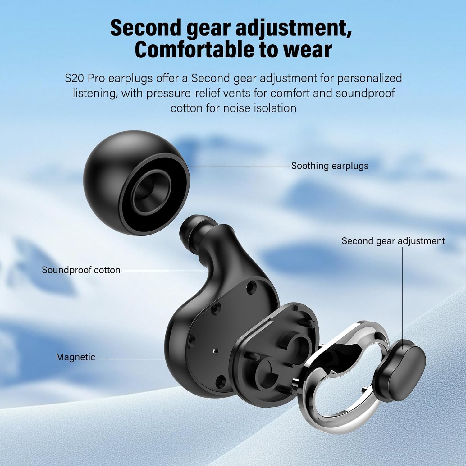 - Dual Noise Modes: S20 Pro Silicone earplugs Switch easily between two noise reduction levels (17dB & 35dB) to match your environment: use the lighter mode to stay focused at work or while reading, and activate the stronger mode for deep sleep, noisy commutes, or snore blocking at night. Tailored sound control without electronics or batteries.