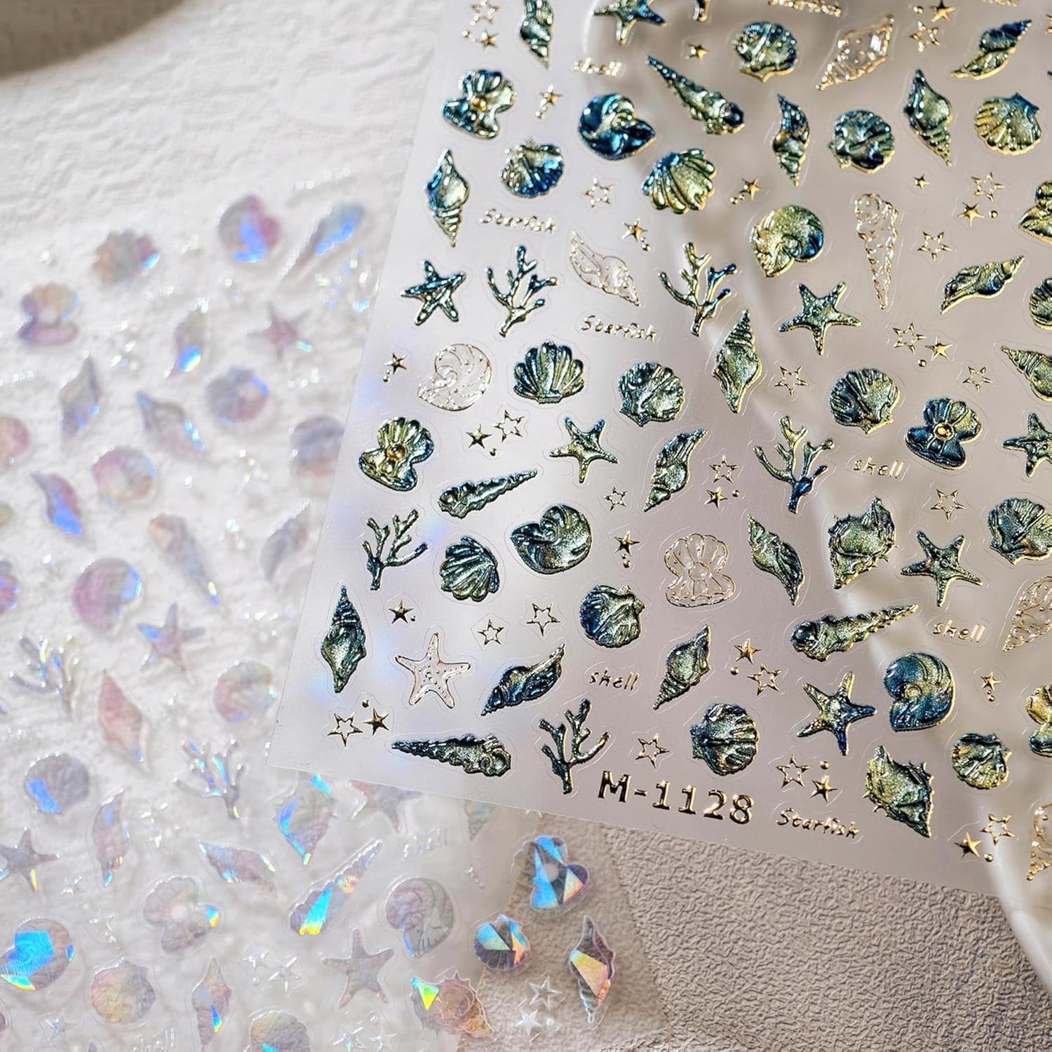 - Package Contents:You will get 2 sheets ocean nail art stickers for acrylic nails supply. Many lovely patterns of the seashell nail decals for you to choose from, colorful design, to meet your rich imagination of nail DIY. These are suitable for acrylic nails