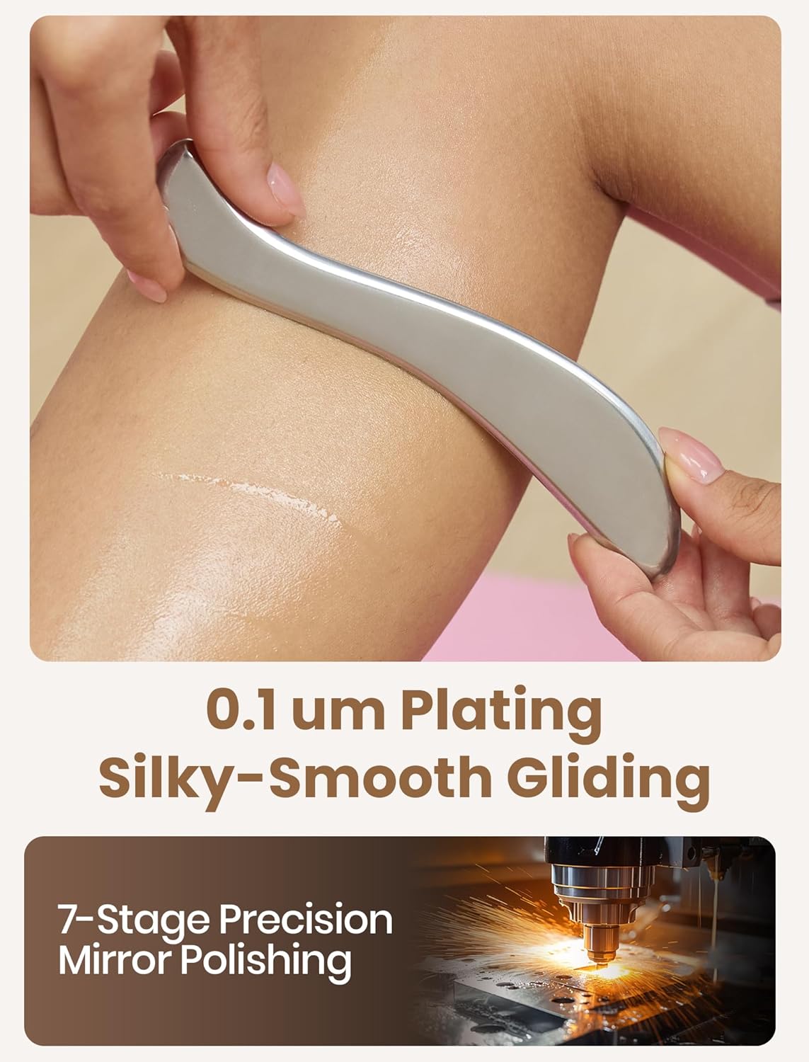 - Gua Sha: Gua Sha releases stagnant energy (chi) to enhance circulation. The mirror-finished Gua Sha Tool glide smoothly without scratching the skin. Compatible with massage oils and lotions for effortless movement, fit for whole body gua sha.