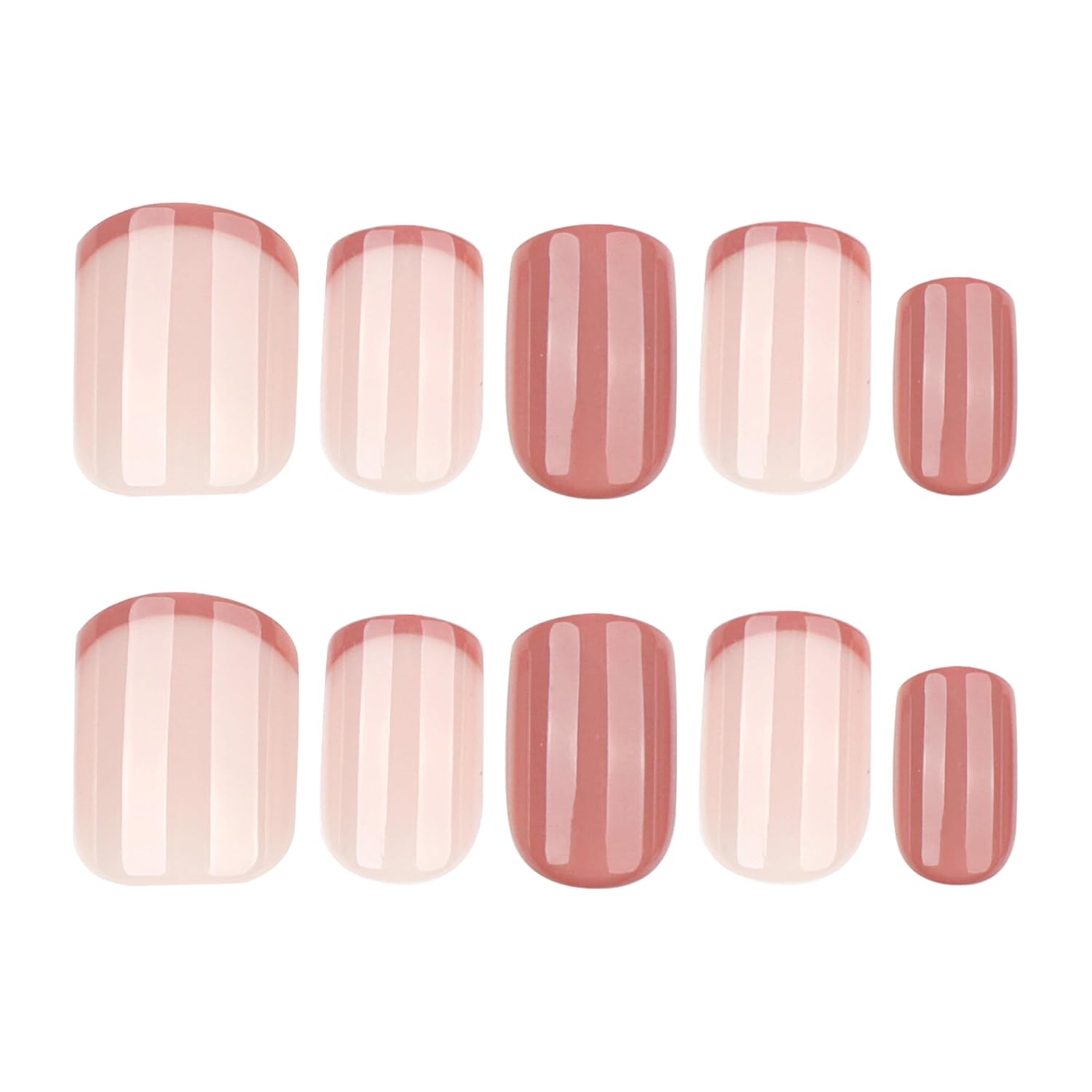 Brown French Tips Press On Nails Short, Acrylic Press On Nails Square with Nail Glue, Glossy Fake Nails Kit, Thick Natural Reusable Glue On Nails for Women, 24Pcs