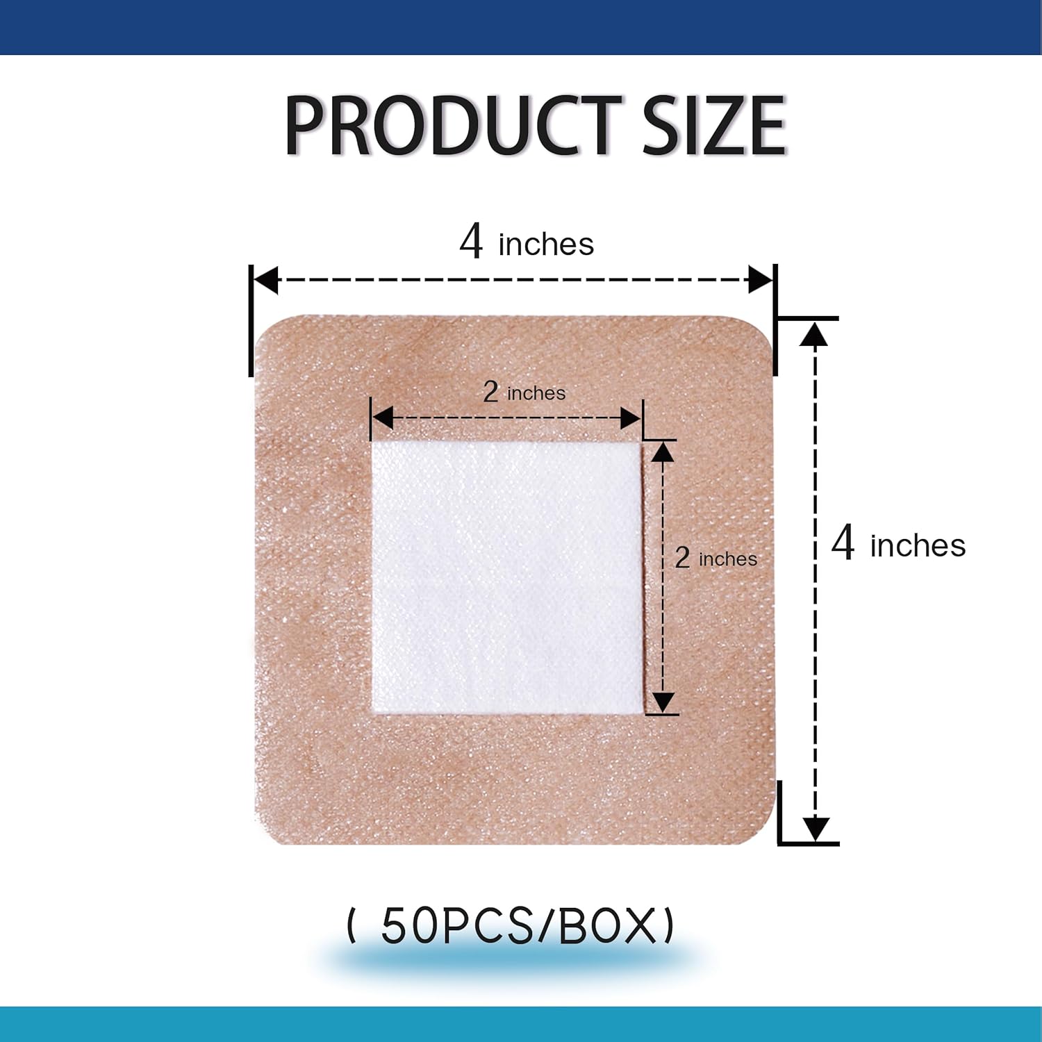 4"X4" 50 PCS Extra Large Sterile Nude Island Dressing Bandage for Wound - Self-Adhesive Boarded Gauze Pads - Latex Free - Medical Grade (Nude, 4"X4"-50PCS)