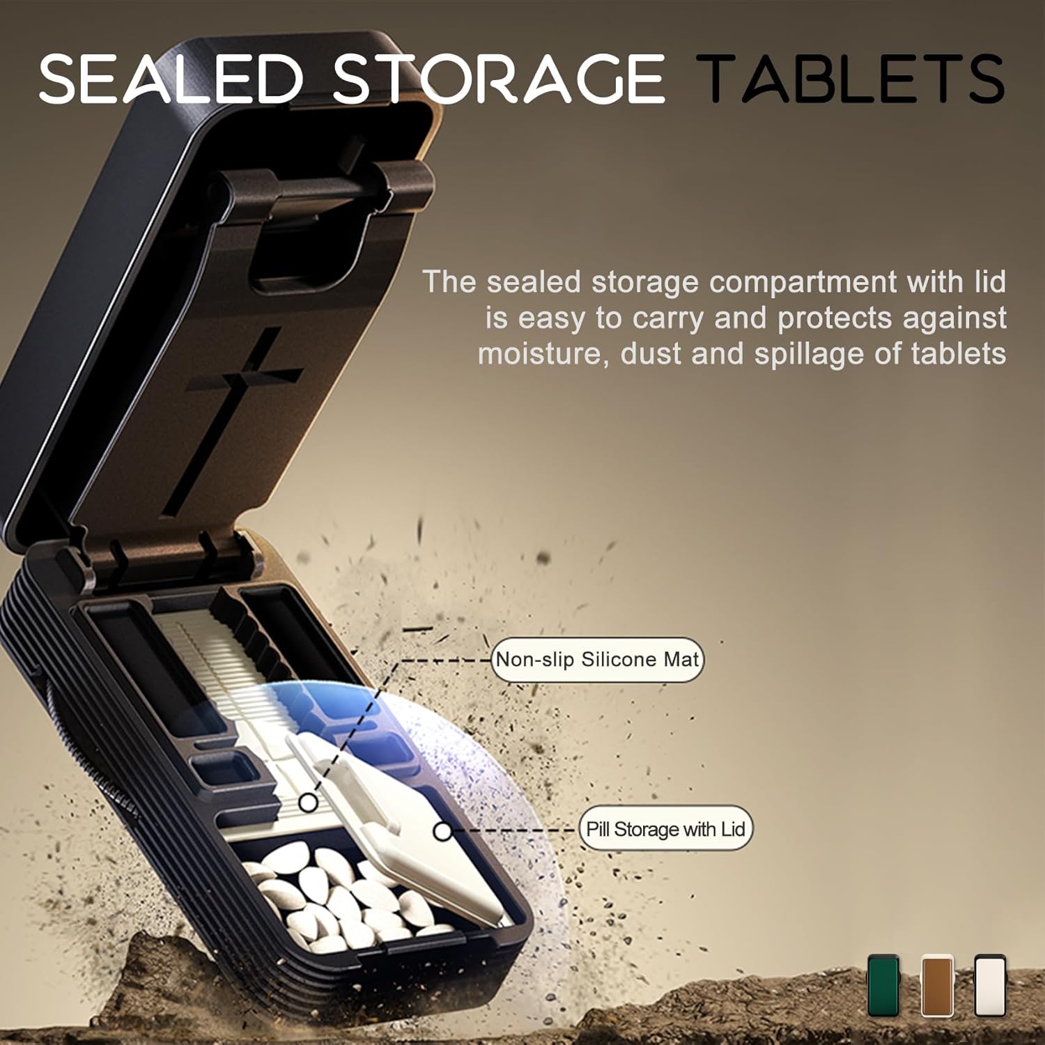 - 【Sealed Storage Tablets】Integrated compartments with airtight lids prevent tablets from spilling out; Holds 10+ large pills (up to 0.7") for travel