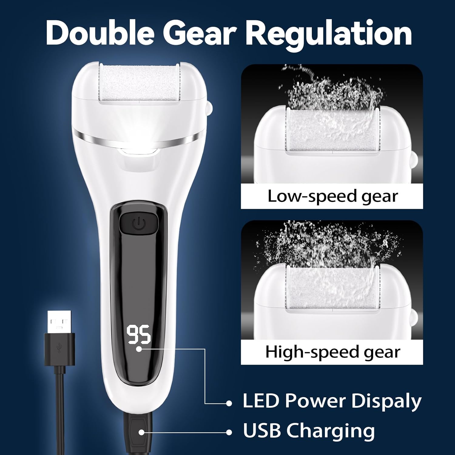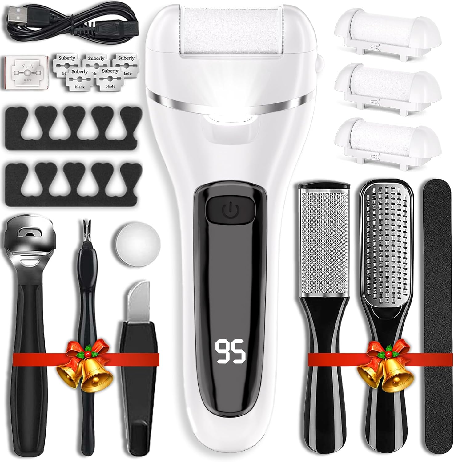 Electric Callus Remover for Feet with 3 Roller Heads 2 Speed Rechargeable Waterproof Professional Pedicure Kit 17 in 1 Foot File Tools Perfect for Dead Hard Cracked Dry Skin