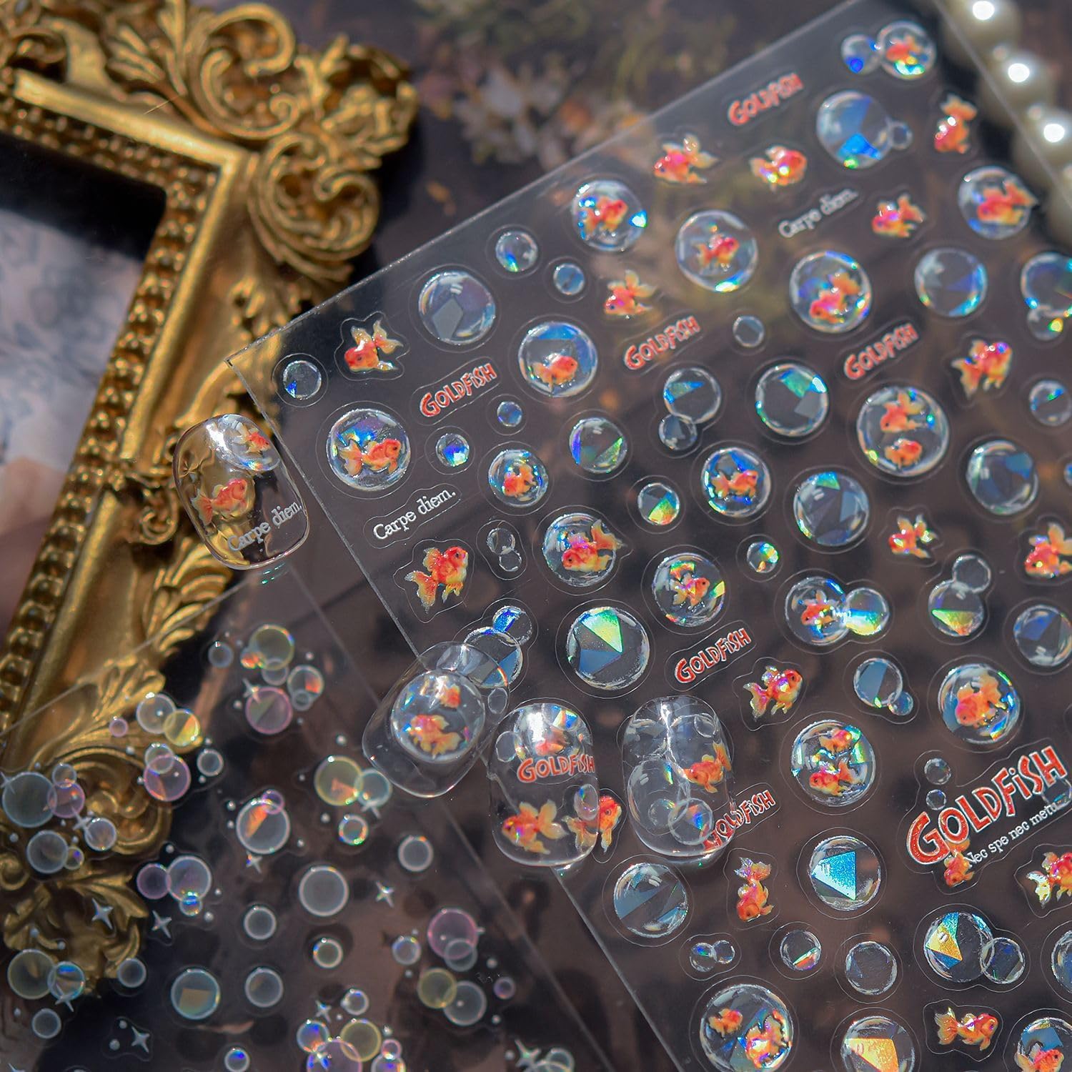 Goldfish Nail Art Stickers Sparkly Koi Fish Nail Stickers 5D Embossed Bubbles Chinese Style Manicure Decals Accessories Shell Light Goldfish Adhesive Slider for Women DIY Nail Art Decorations