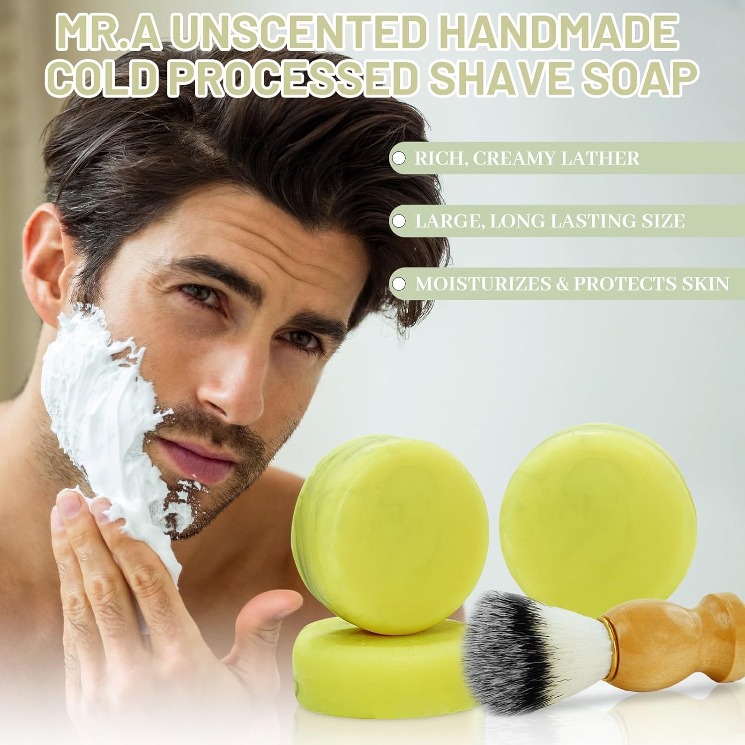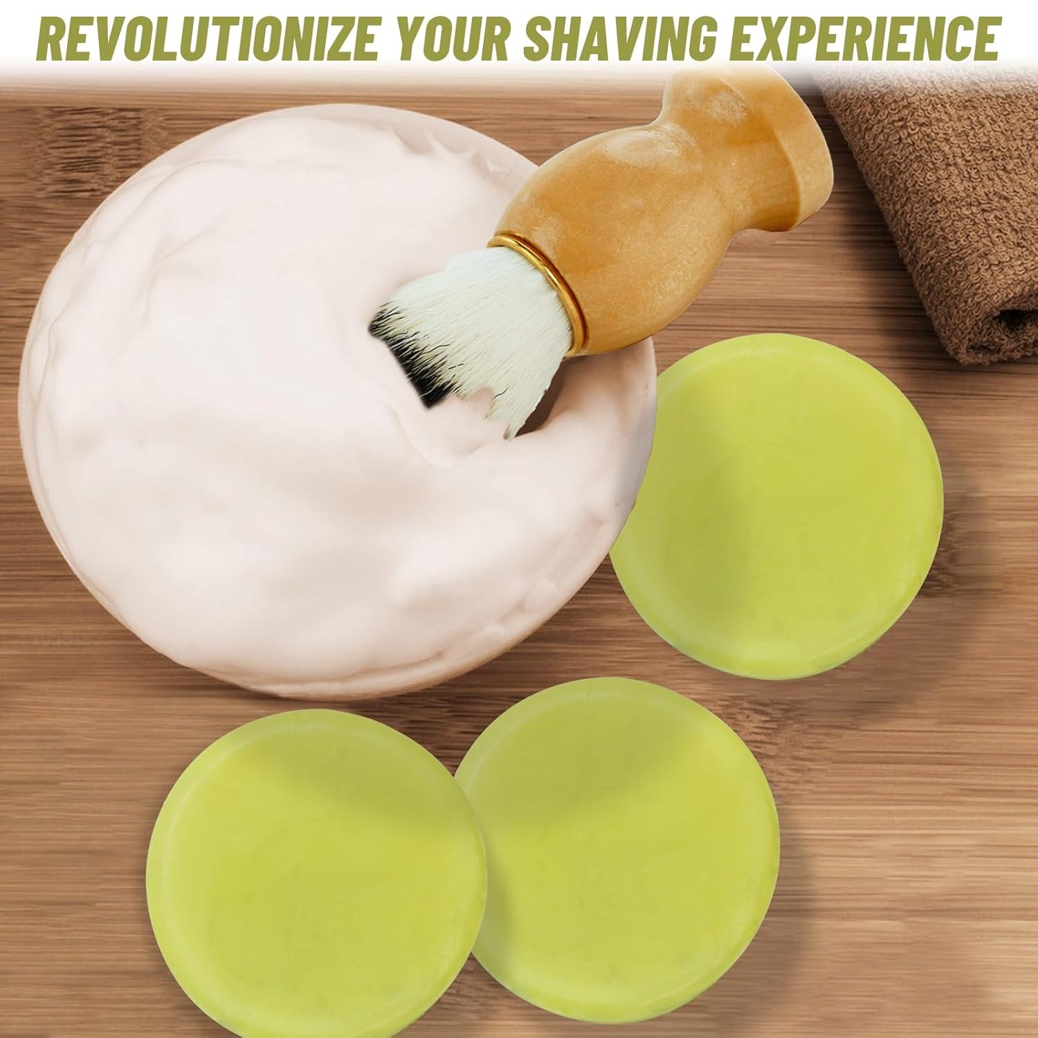 3Pack Shaving Soap for Men, Shaving Soaps Puck for Sensitive Skin, Unscented Shave Soap Bar, Rich Lasting Lather, Light Natural Scent