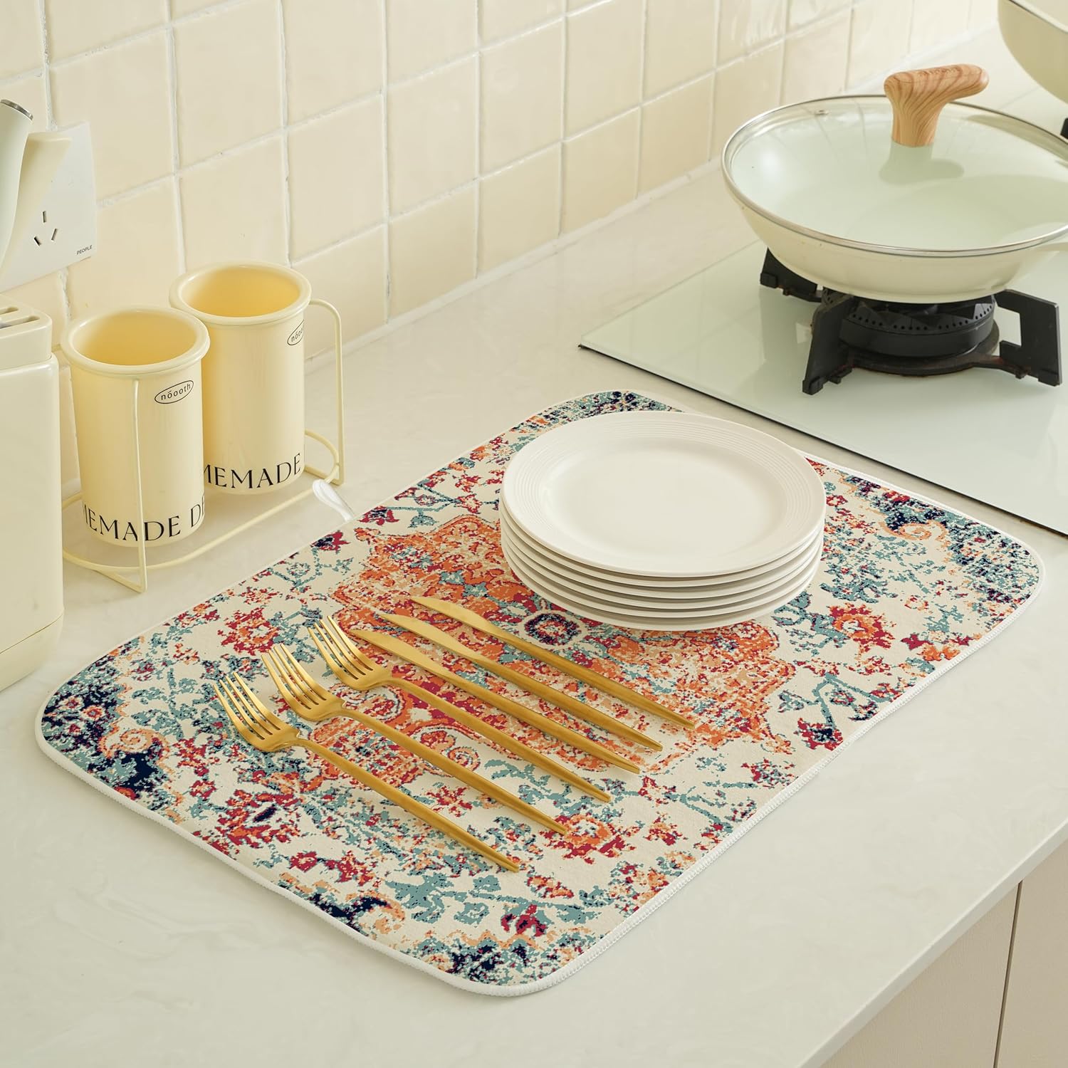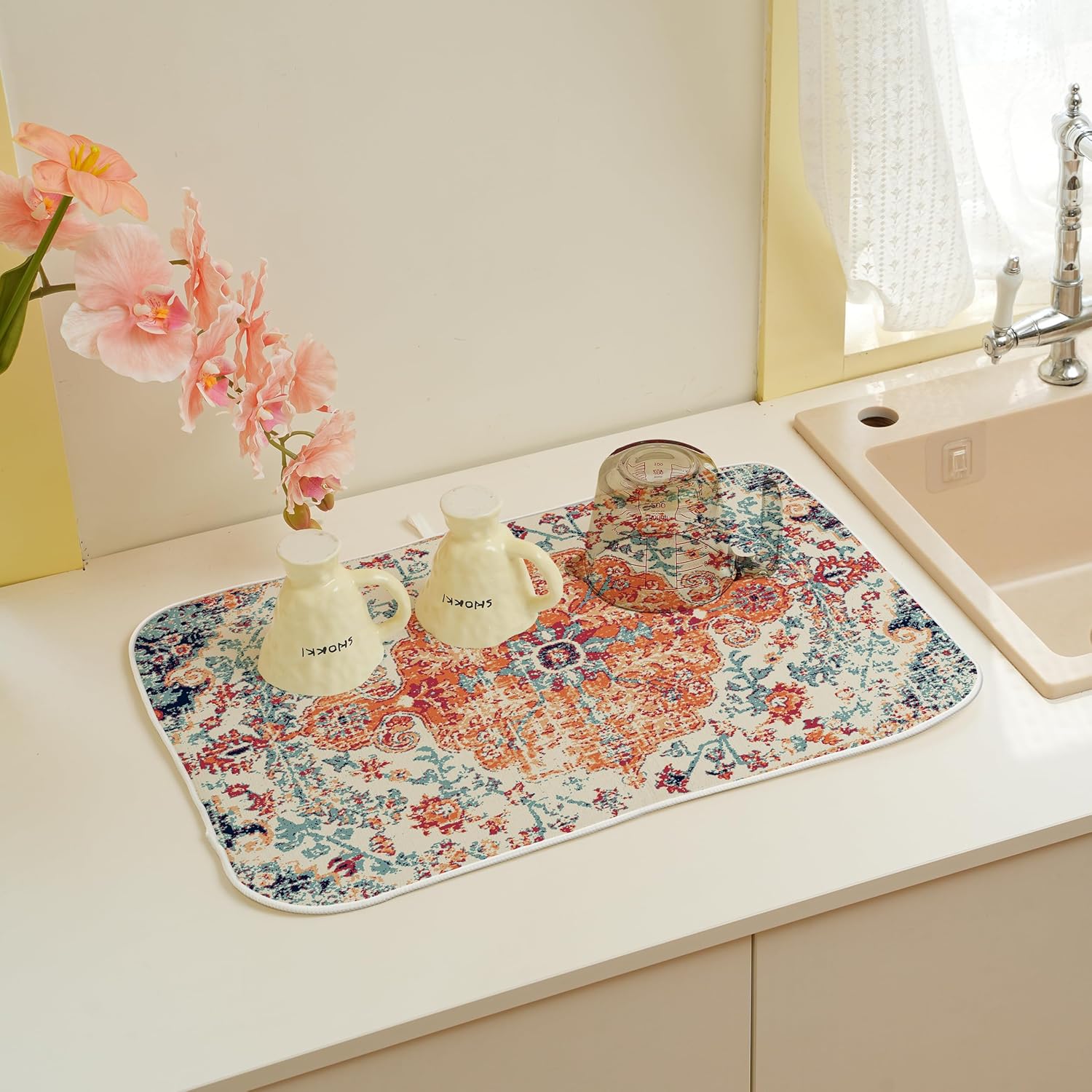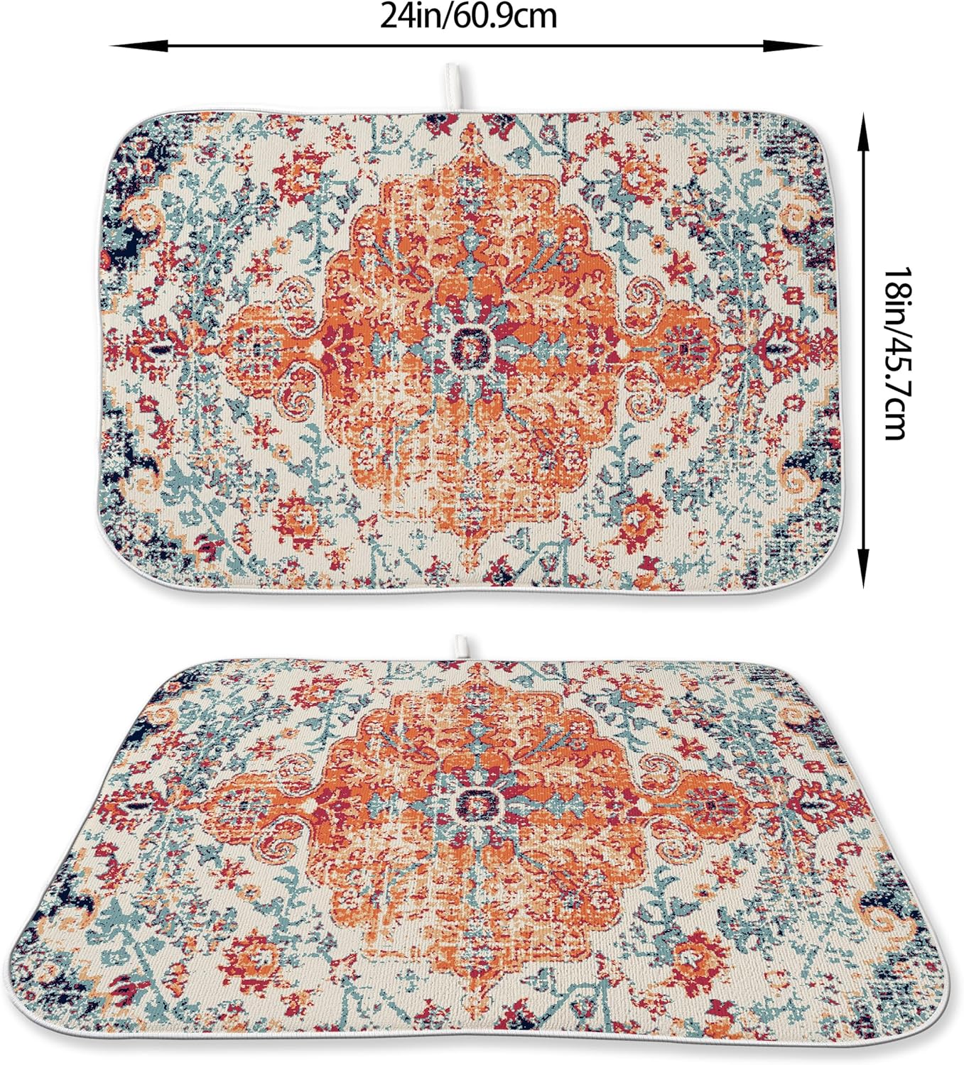 Orange Dish Drying Mat for Kitchen Counter, 18x24 Inch Burn Orange Boho Style Absorbent Dish Drying Pad Heat Resistant Mat Coffee Bar Mat Dish Drainer Rack Mat