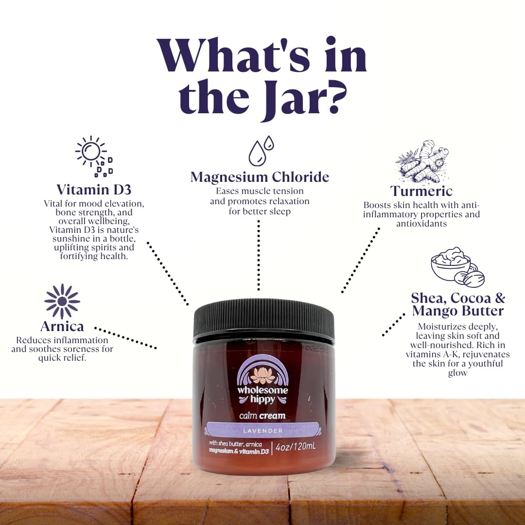 Calm Body Cream with Magnesium, Arnica & Vitamin D3 – Lavender Scented – Nourishing Botanical Moisturizer with Shea, Turmeric & Aloe – 4oz