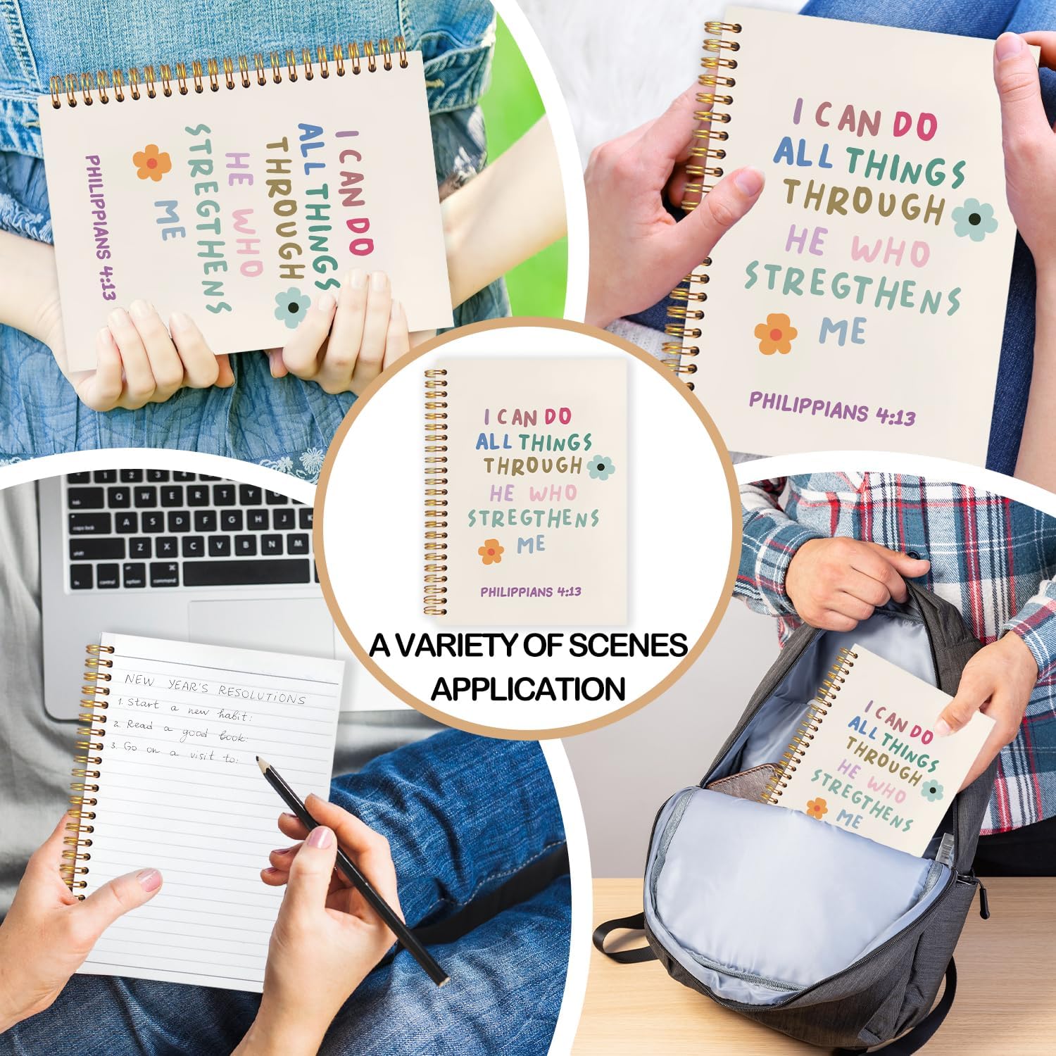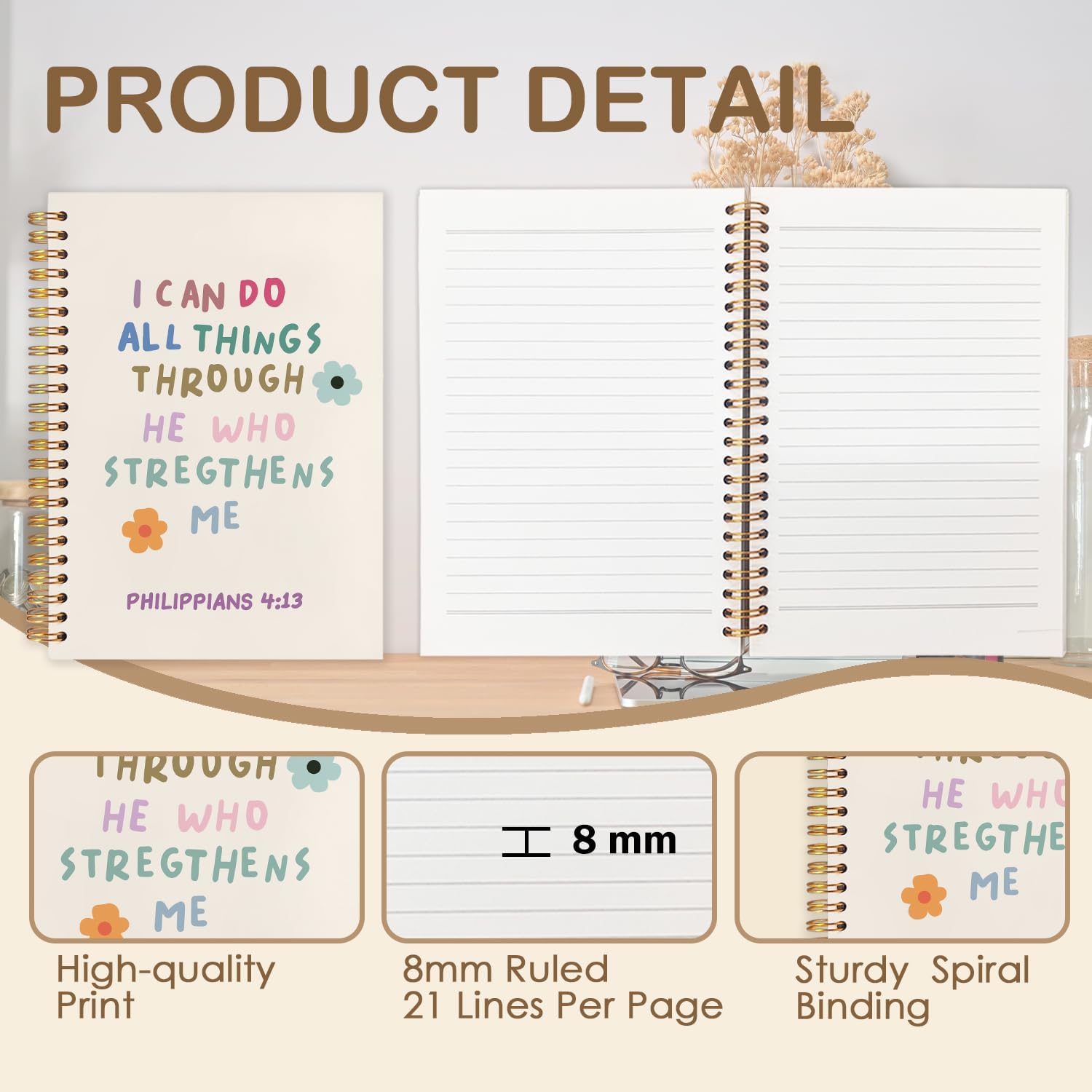 Christian Spiral Journal Notebook 5.5x8.3in, I Can Do All Things Through He Who Strengthens Me,Philippians 4:13 Bible Journal, Cute Floral Bible Notebooks for Note Taking, Hardcover Notebook