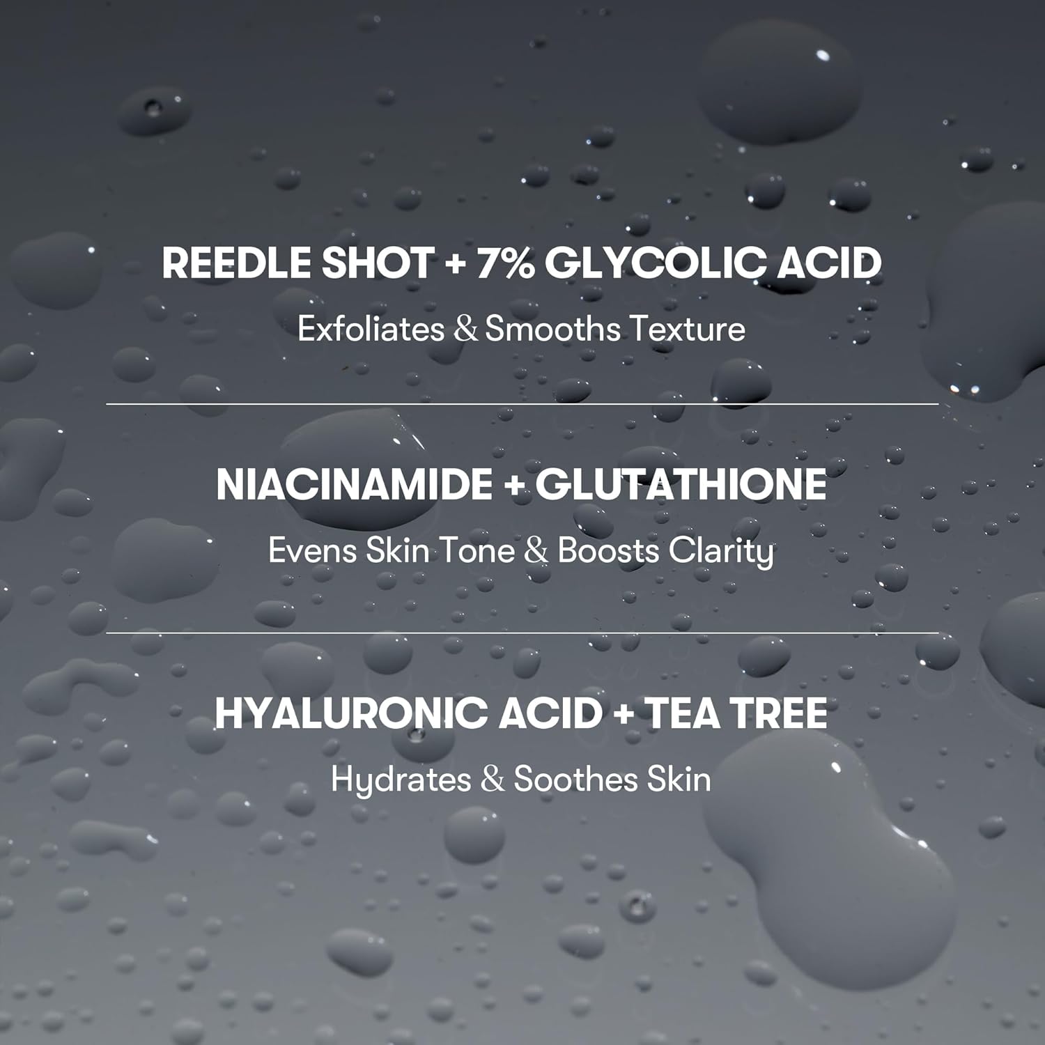 - [Head-to-Toe Exfoliation with 7% Glycolic Acid] This liquid exfoliant gently removes dead skin cells and bumps using Glycolic Acid and ultra-fine Reedle Shot, refining rough skin from scalp to toe for a smooth, radiant finish.