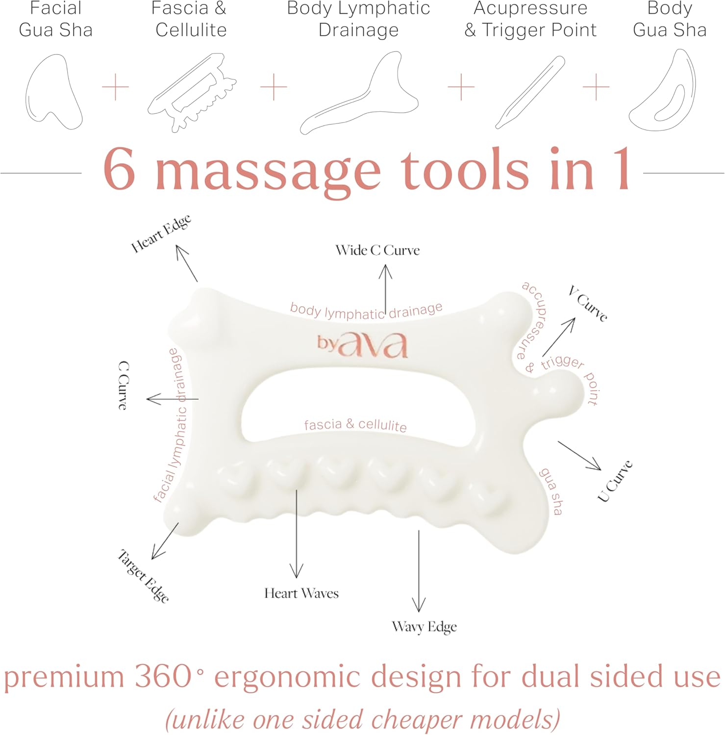 byAVA Gua Sha Jelloskin Lymphatic Massage Tool | Ceramic GuaSha for Face & Body Massage Tool | Patented Design for Lymphatic Drainage, Face Lift & Muscle Relief Body Massager