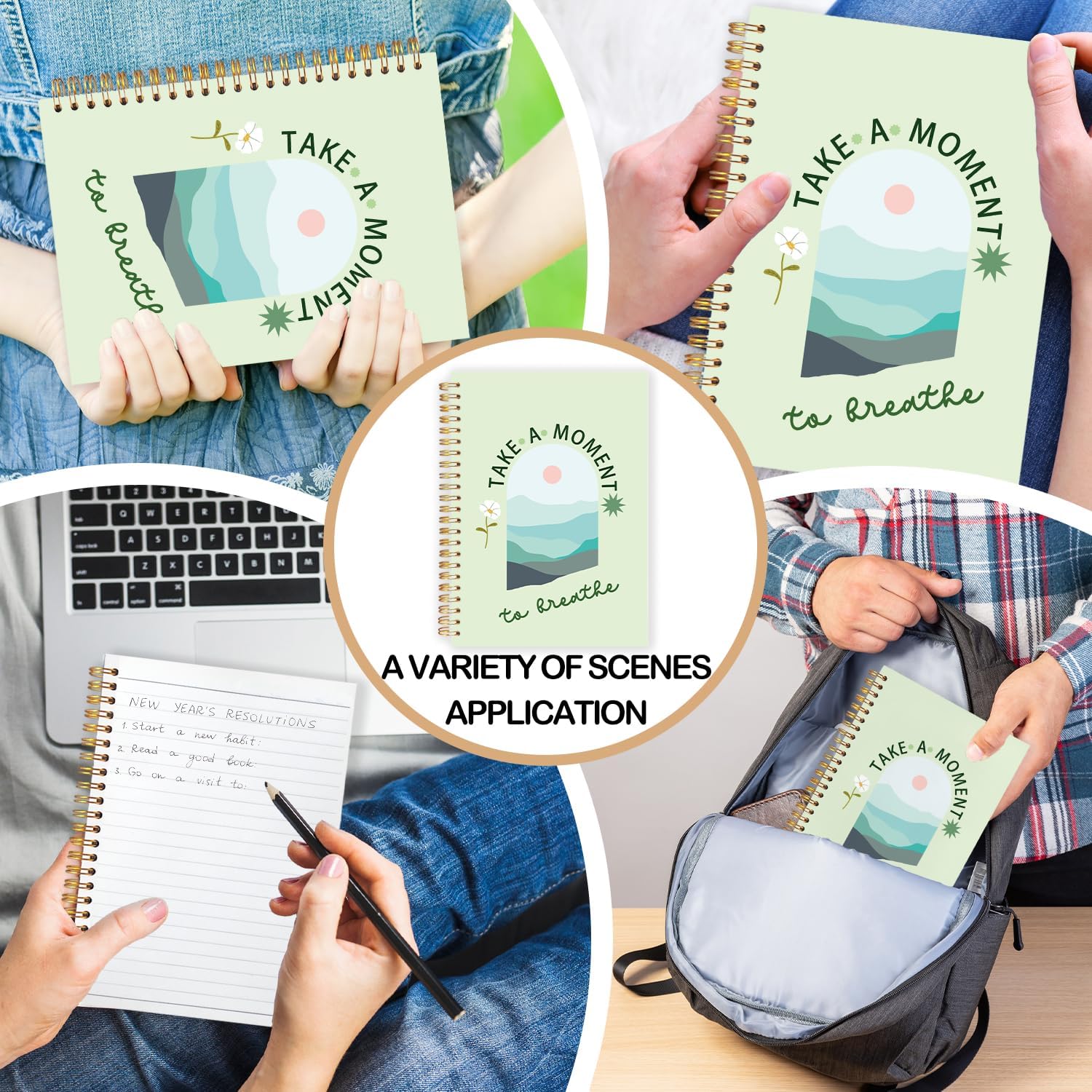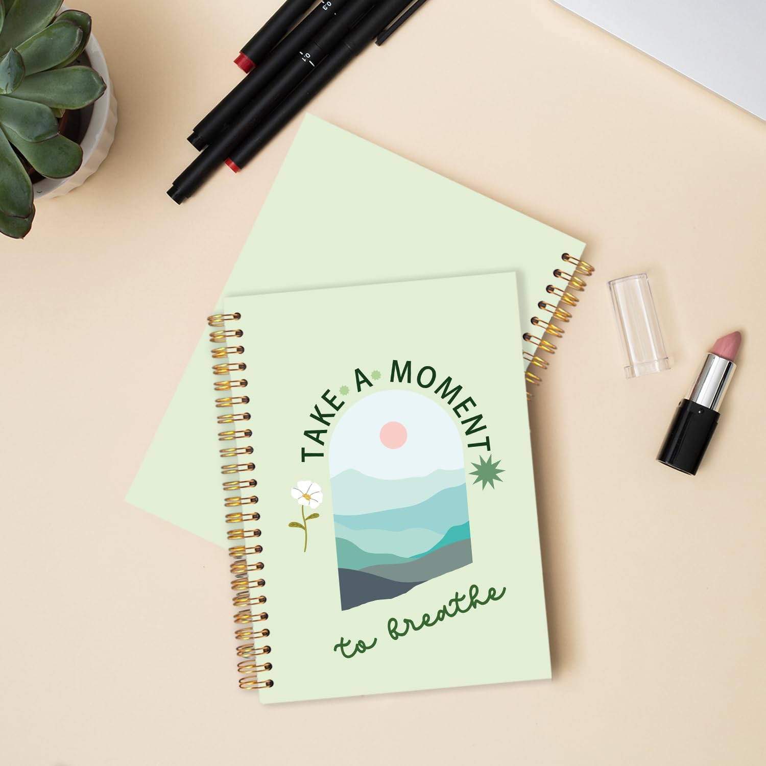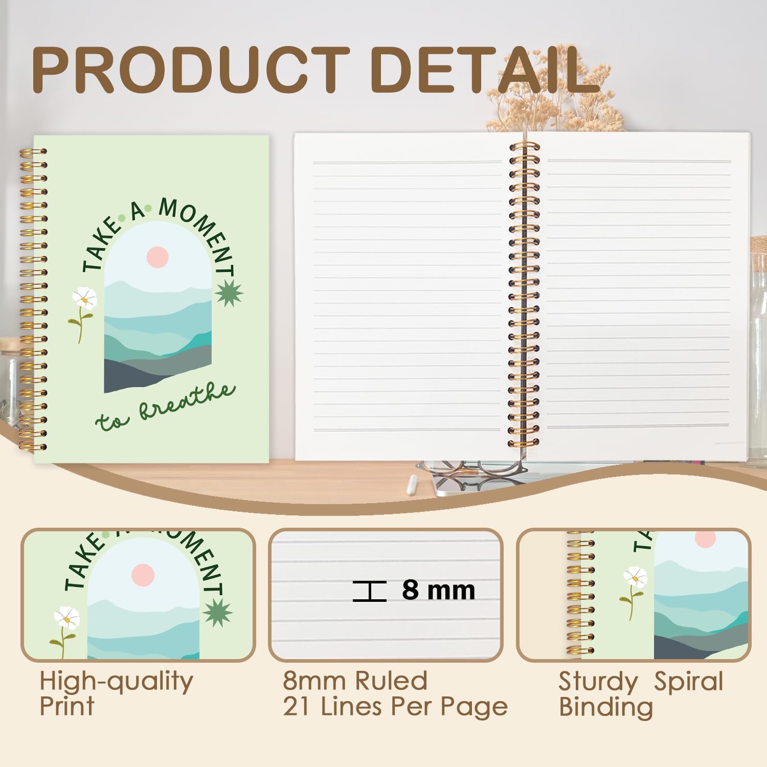 FDHSPAAM Sage Green Mental Health Spiral Journal Notebook 5.5x8.3in, Take A Moment to Breathe Boho Inspirational Notebooks for Note Taking, Therapy Office Must Haves, Hardcover Notebook Journal