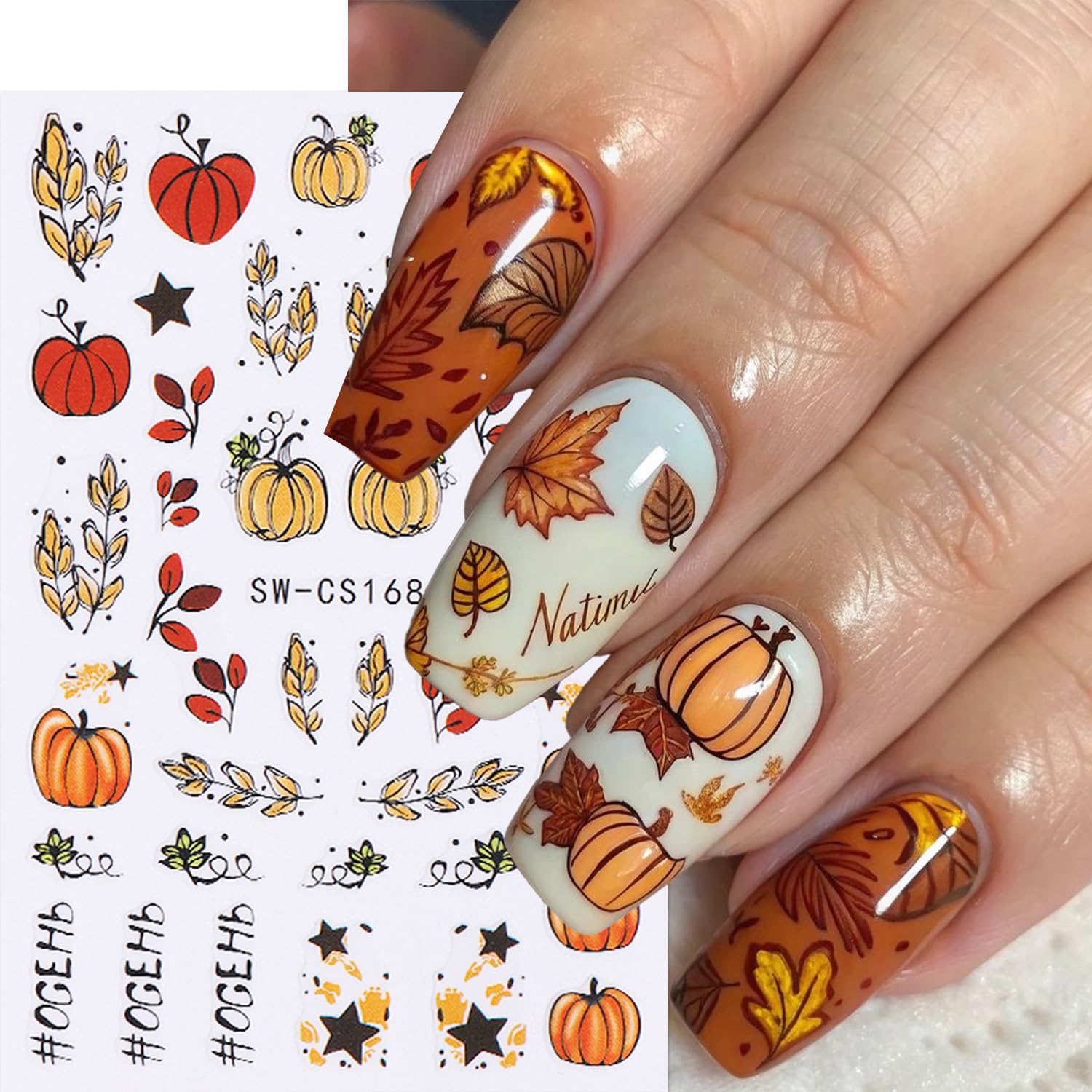 - Quantity: You will get 8 sheets of autumn maple leaf nail art stickers, including maple leaves and pumpkin pattern designs, not easy to fall off or fade, can easily create a variety of themed nail art, meet the needs of reusable