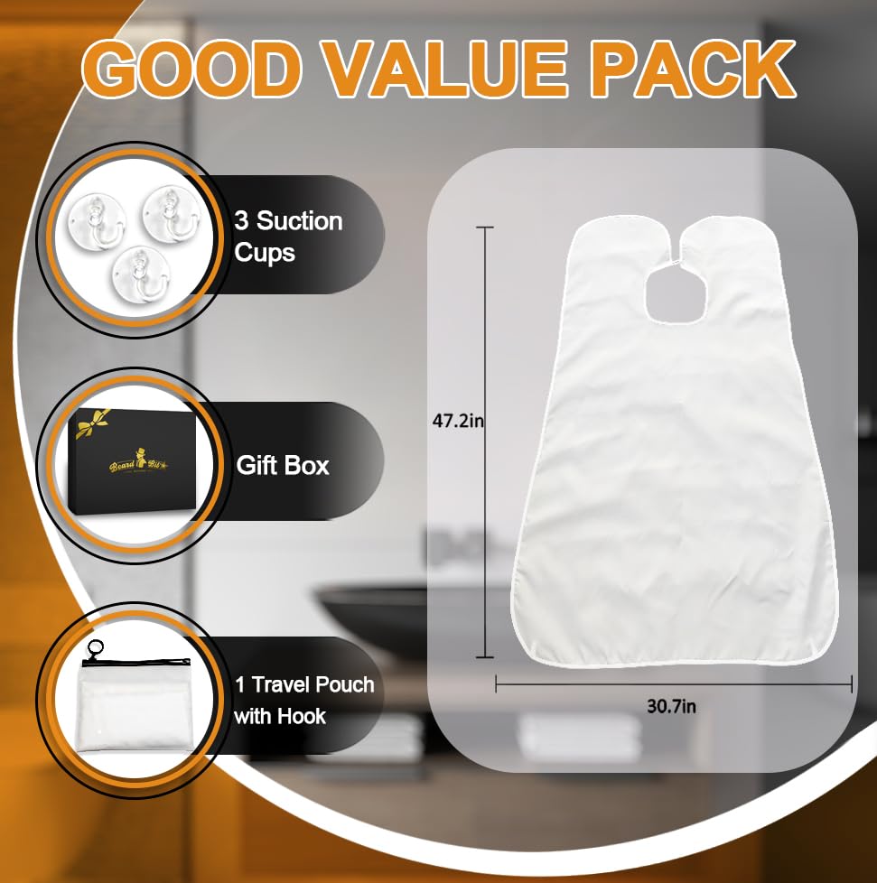 Gifts for Men, Beard Bib Apron, Large Beard Shaving Apron Cape with Suction Cups and Packing Pouch, Gifts for Dad Husband Boyfriend, Stocking Stuffers Christmas Gifts Father Day's Gift Birthday Gift