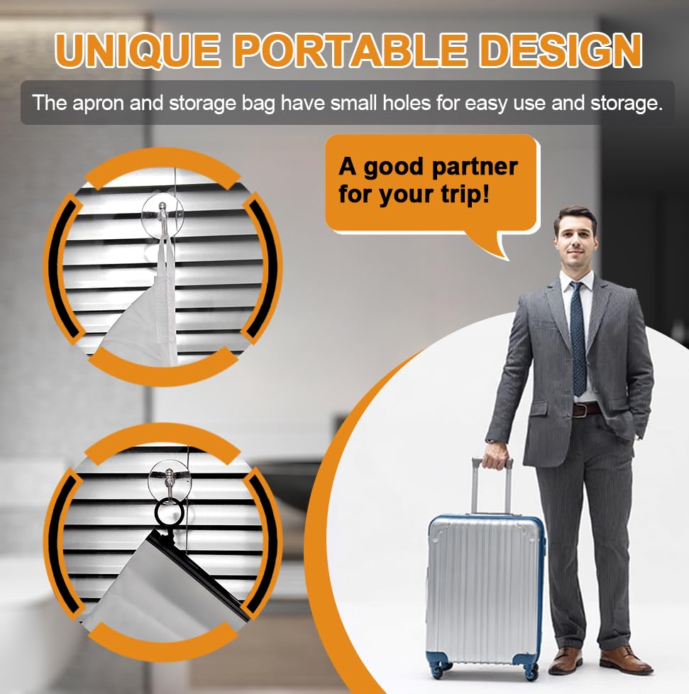 - Easy to Use: Comes with three suction cups and a storage bag. Attach the adjustable Velcro neck strap and use the suction cup to fix the beard trimmer to the mirror, then you can start shaving, and it is just as easy to put away after shaving. With our beard apron, you can save precious minutes by eliminating the need for extensive sink cleaning. Others, the storage bag comes with a special design with a small loop at the zipper position for easy hanging.