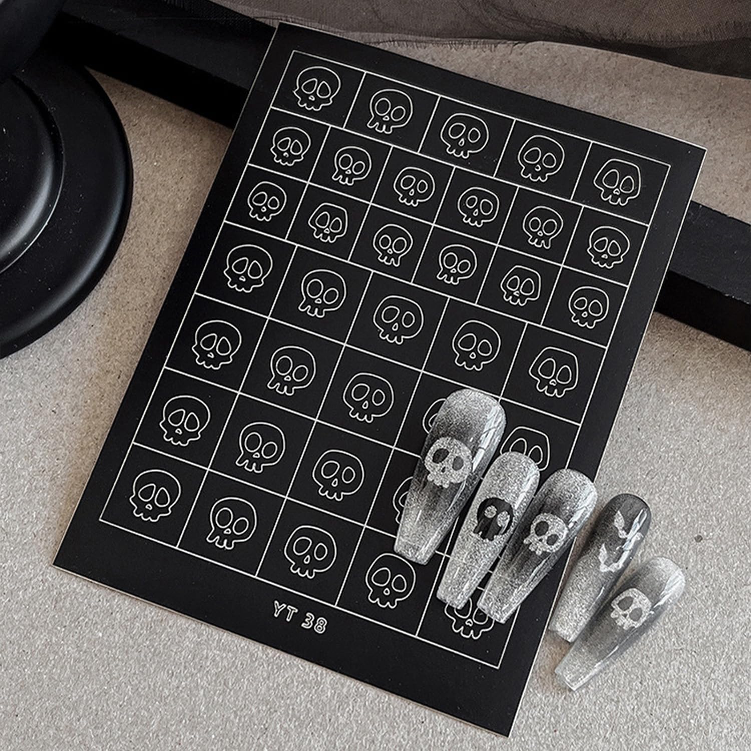 - Special Nail Designs:6 sheets airbrush stencils 3D self-adhesive stickers, the nail decals contain skull ghost witch bat pumpkin grimace designs, the best choice for halloween manicure,let you get a different manicure every day, it provides you with a variety of options to give full play to your rich imagination of nail DIY.