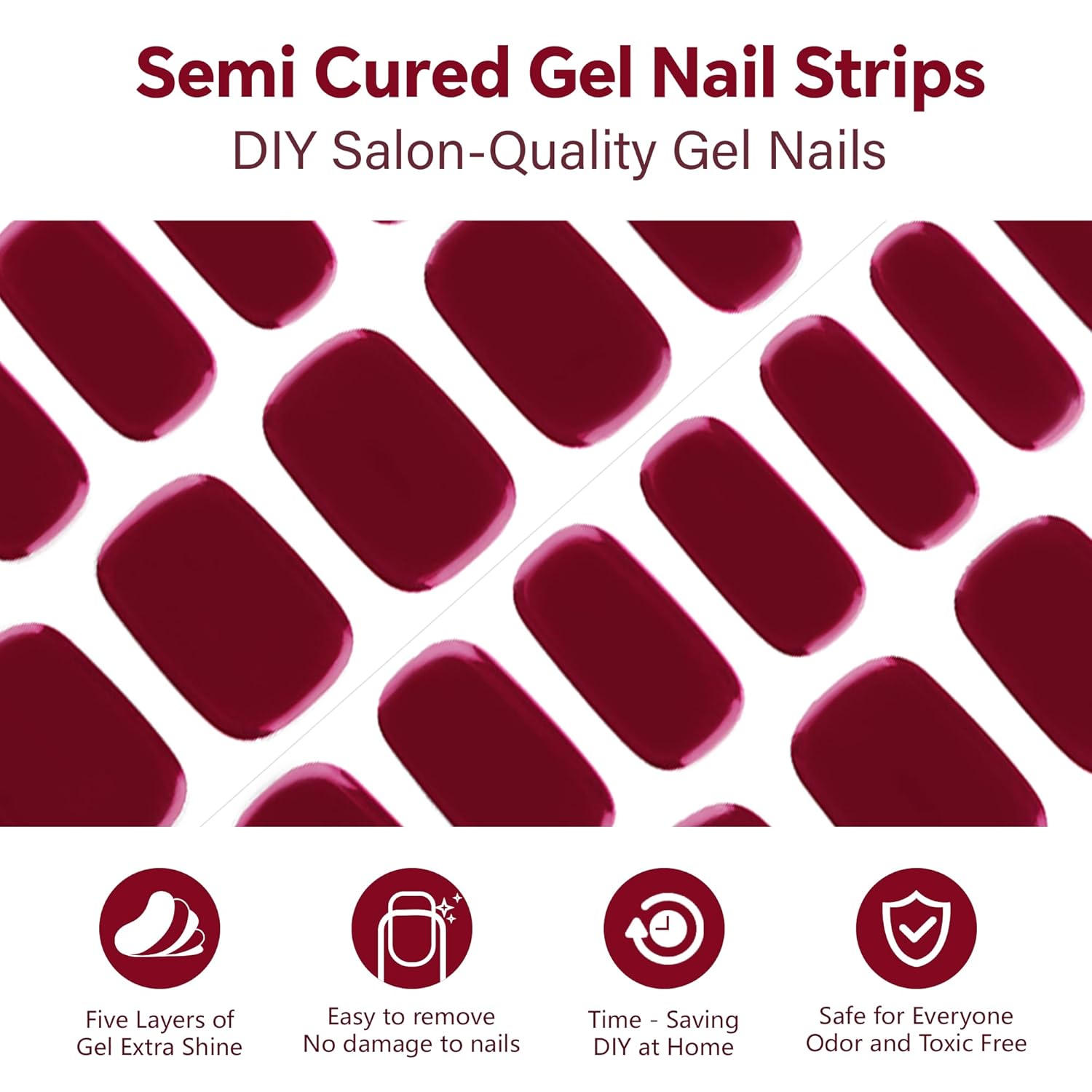 Semi Cured Gel Nail Strips-Glamorous Semi Gel Nail Stickers Natural Nude Shades Press On Nails Easy Home Application Works with Any UV/LED Lamps Glossy Finish(Rouge)