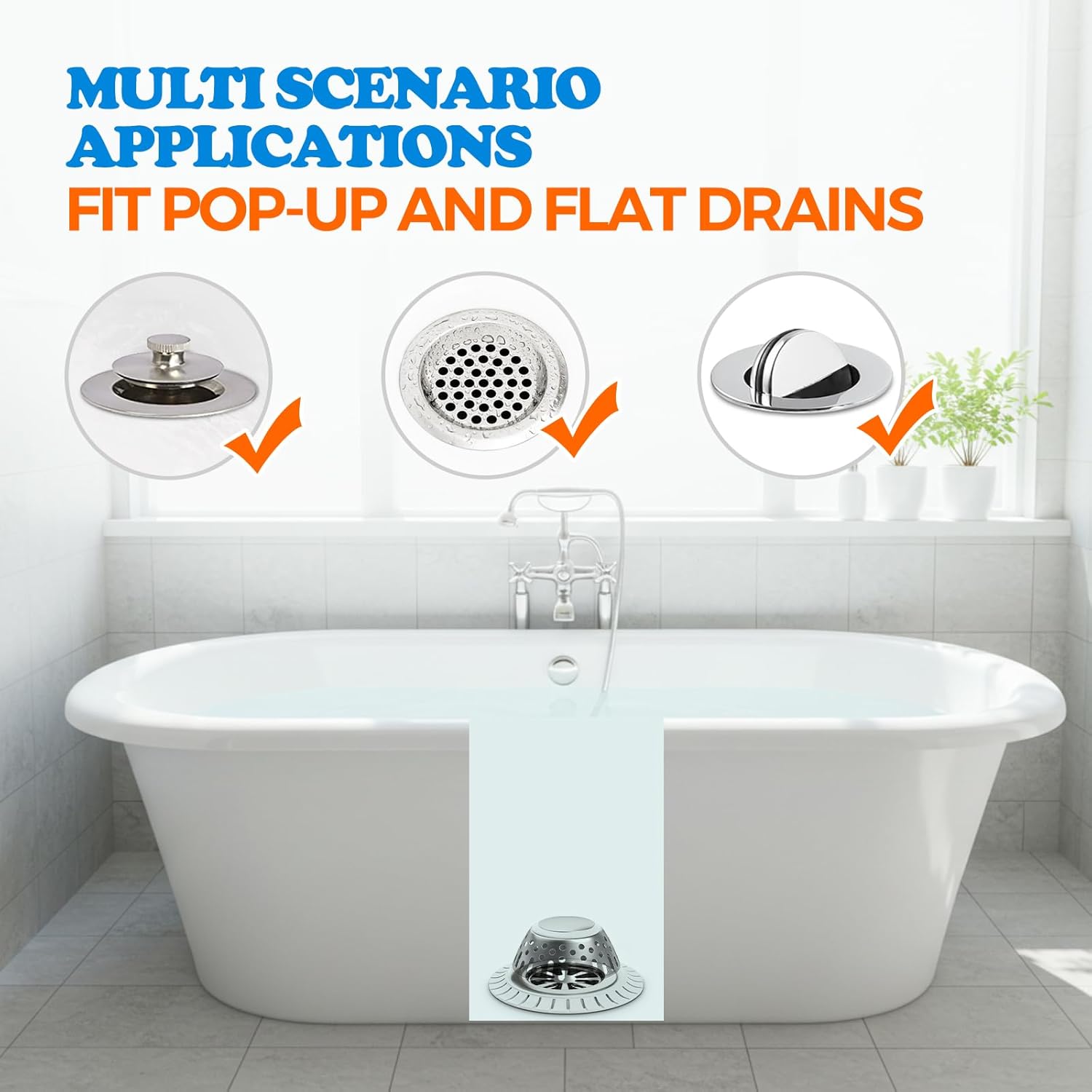 - 【Wide Application - Sink Protector】Our hair stopper for bathtub and shower drain fits most standard bathtub, tub, shower room drain and sink drains. Please note that it can't be used on uneven floors