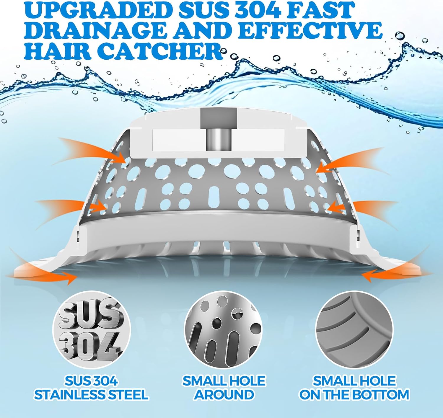 - 【Prevent Cloggs & Ensure Smooth Drainage】This Drain Hair Catcher made of 304 stainless steel can save you from the bothering task of unclogging drainage. Small holes on the buttom and side allow water to drain while filtering hair and debris