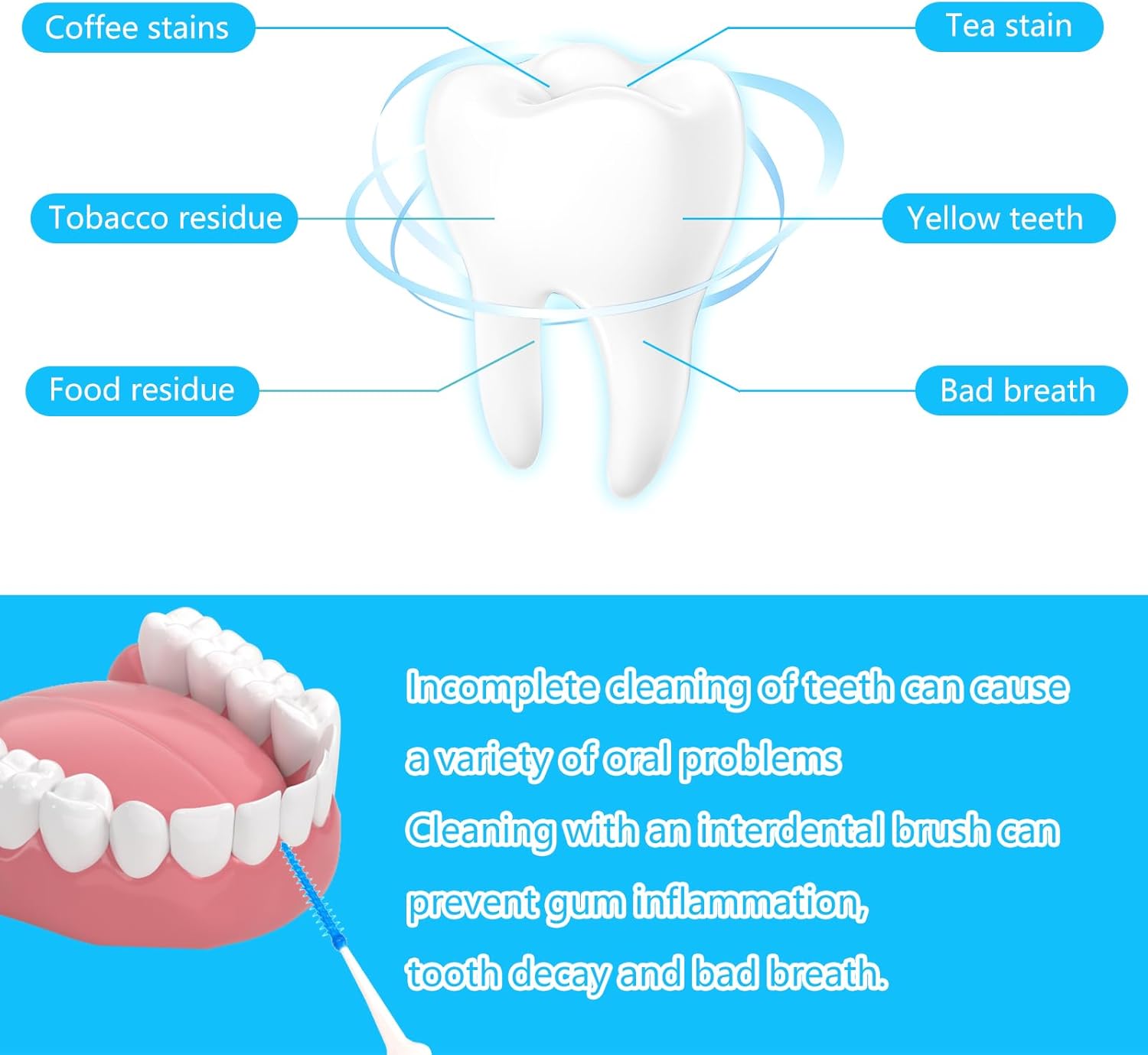 - 【2-in-1 Design】: One end of the teeth cleaning tools is made of soft silicone, which can be easily bent, the curved design makes it easier for you to clean your mouth; The longer handle provides better touch and handling. The end can also be used as a toothpick to clean your teeth.