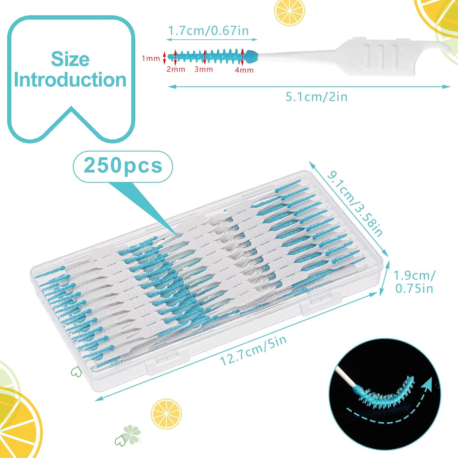 - 【250 Quantity】: The package contains contains 250 green interdental brushes and a storage box, enough for daily use and replacement for you and your family. Disposable design, discarded after each use, helps maintain cleanliness.