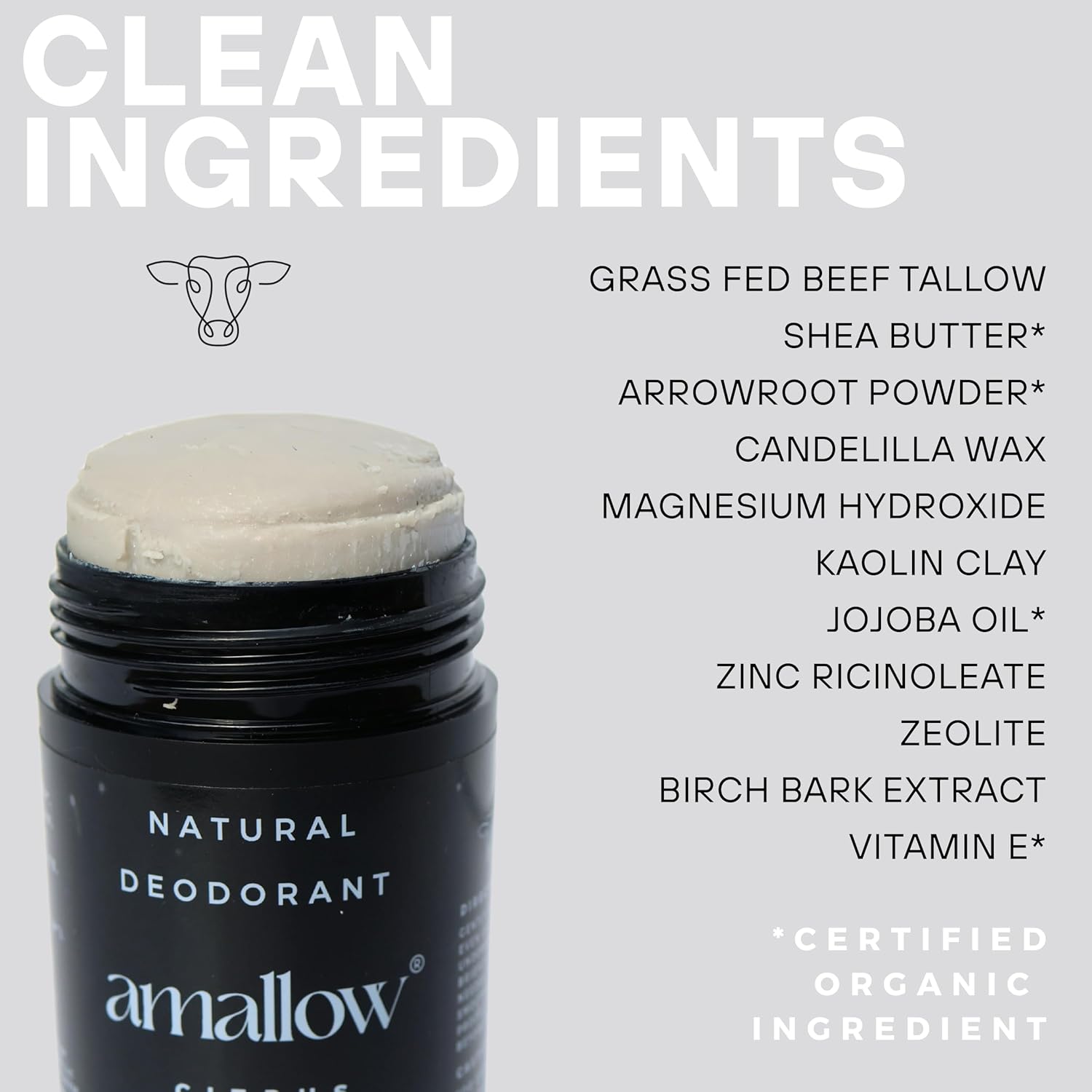 Amallow - Natural Deodorant – Aluminum Salt-Free, Tallow-Based, Baking Soda-Free, with Magnesium & Zinc – Long-Lasting Odor Protection – Handcrafted in the USA – 2.6 oz (Unscented)