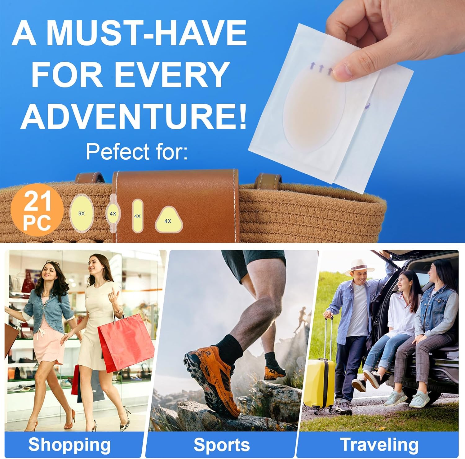 - [Multi-Size Combination Pack] Contains 21 pieces of gel blister bandages to meet all your blister needs, featuring various sizes (large, medium, small) for perfect fit on heels, joints, and other friction-prone areas without the need for cutting. Conveniently portable to tackle sudden blister issues on the go.