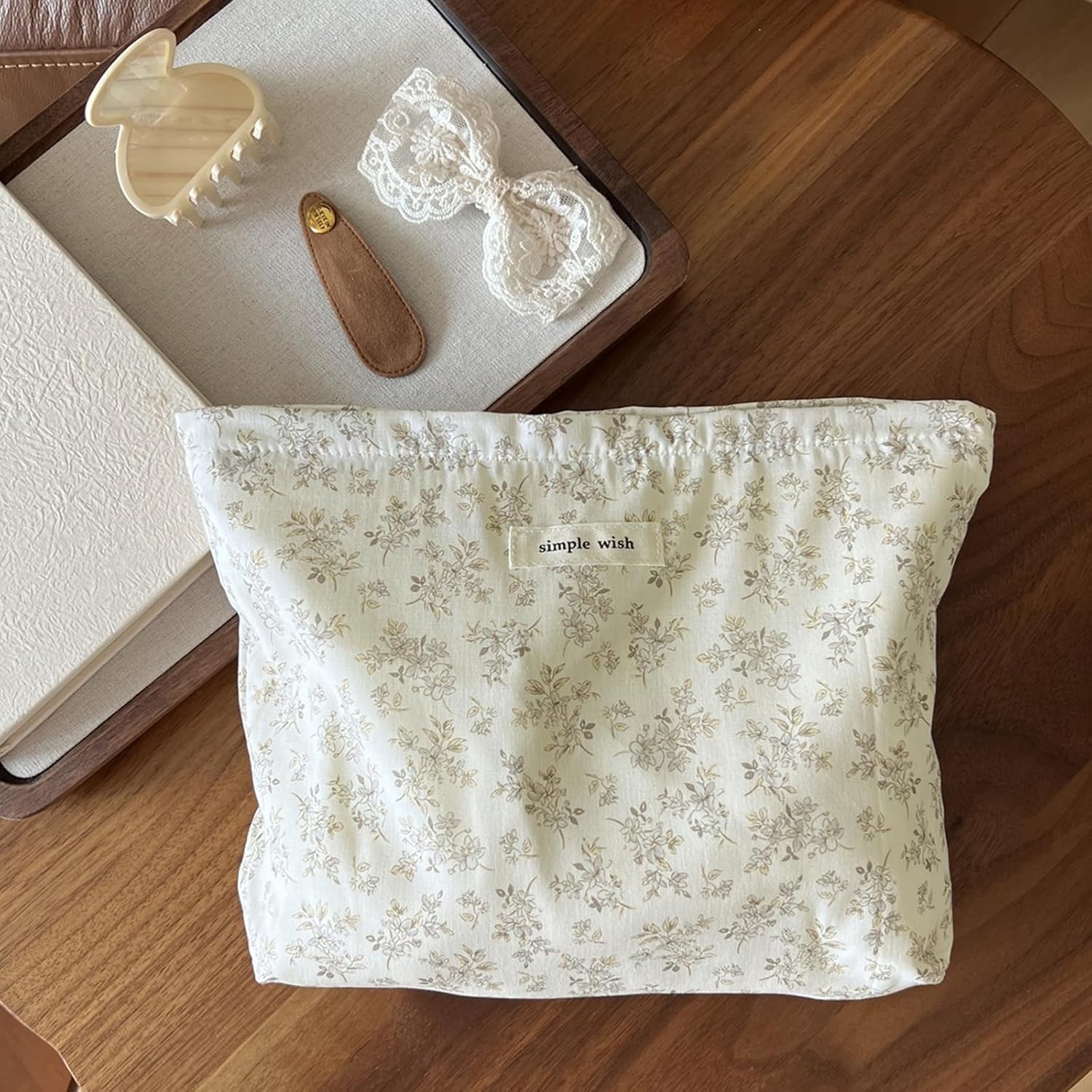 Wudygirl Cute Makeup Bag for Women - Travel Cosmetic Bag with Zipper Makeup Pouch Floral Make up Organizer Handbag Aesthetic (Khaki Floral)