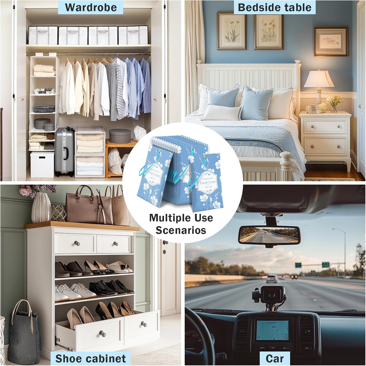 - Multi-Purpose Use: : Just Place these closet sachet to anywhere such as closet, drawer, bedroom, bathrooms, luggage, cars, clothes storage, suitcase and handbags to let your life be filled with perfect sweet fragrance, always keep a good mood.