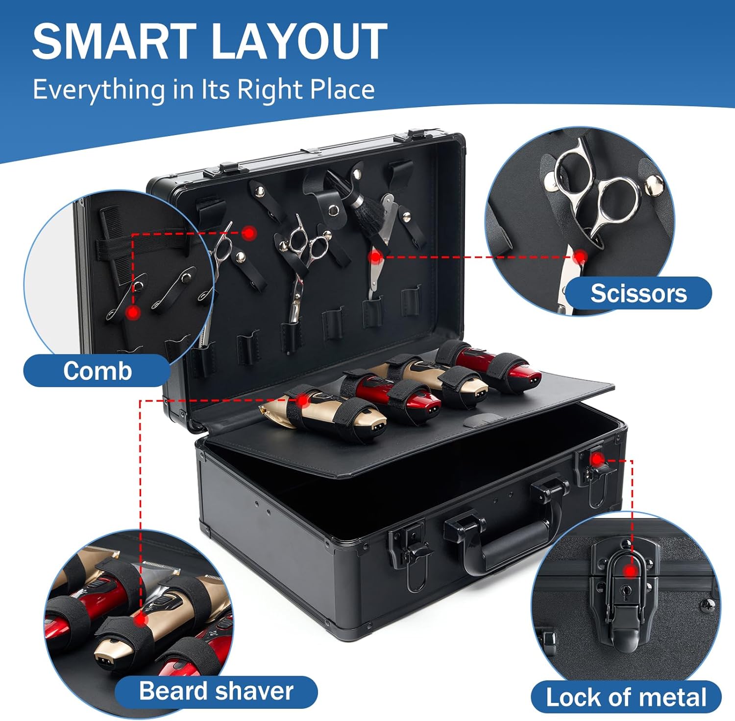- Professional-Grade Portability: Ergonomic handle and balanced weight distribution make this the most comfortable barber case to carry all day. The streamlined single-lock design eliminates bulky dual-lock mechanisms that slow down busy professionals