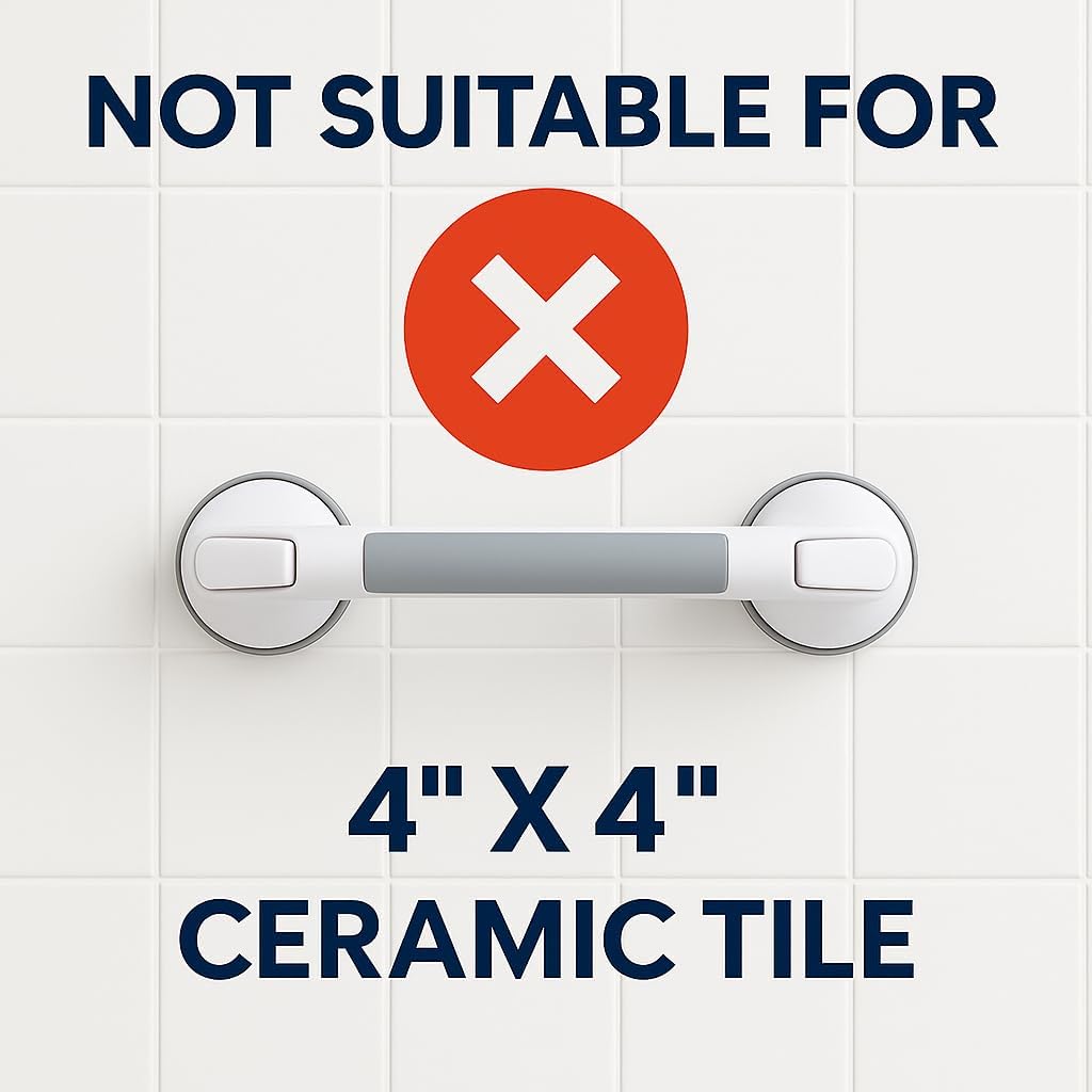 - IMPORTANT NOTE: CIVJET bathroom grab bars are designed exclusively for smooth, non-porous surfaces such as tiles, glass, acrylic, and metal. Avoid installation on porous surfaces or grout lines as these may cause the suction cup to lose its grip. These bars are intended to assist with partial weight support and should not bear full body weight