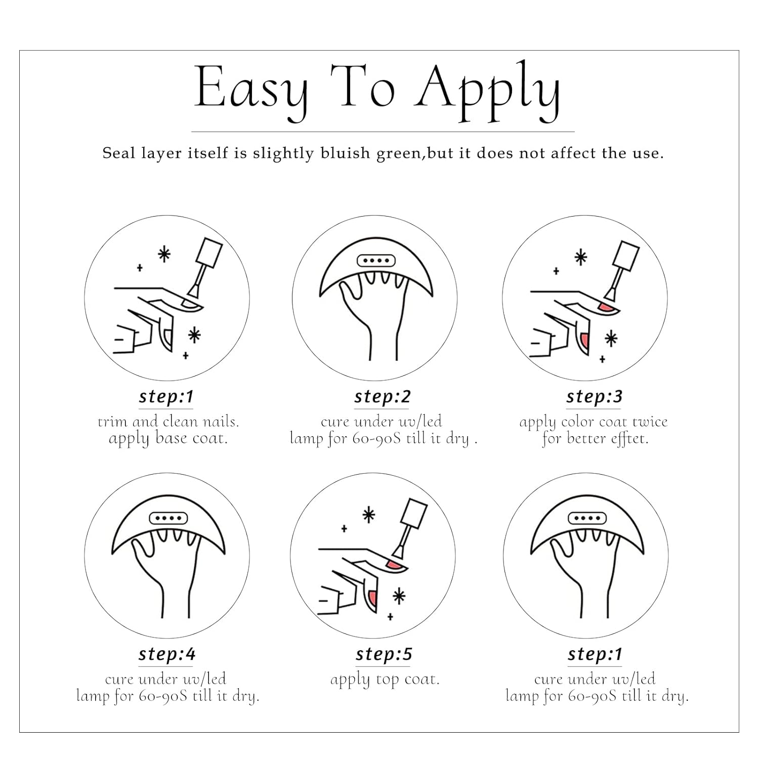 - 【Warm Tips】The glow in the dark top coat is not a completely transparent color, but will have a little green color. This is normal, and there is no need to worry about the nail polish itself. Glow in the Dark Gel Top Coat.