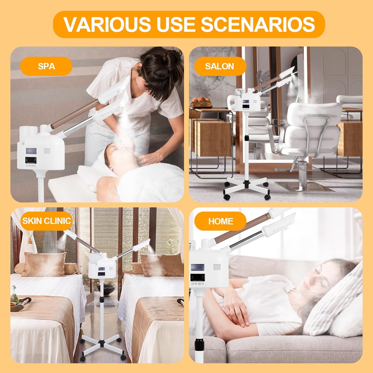 - 【Convenient Mobility】With convenient rolling wheels, this facial steamer can easily be transported around your home or between treatment rooms. Mobile facial steamer with wheels allows you to lie down or sit down to enjoy the spa aromatherapy wherever you are.