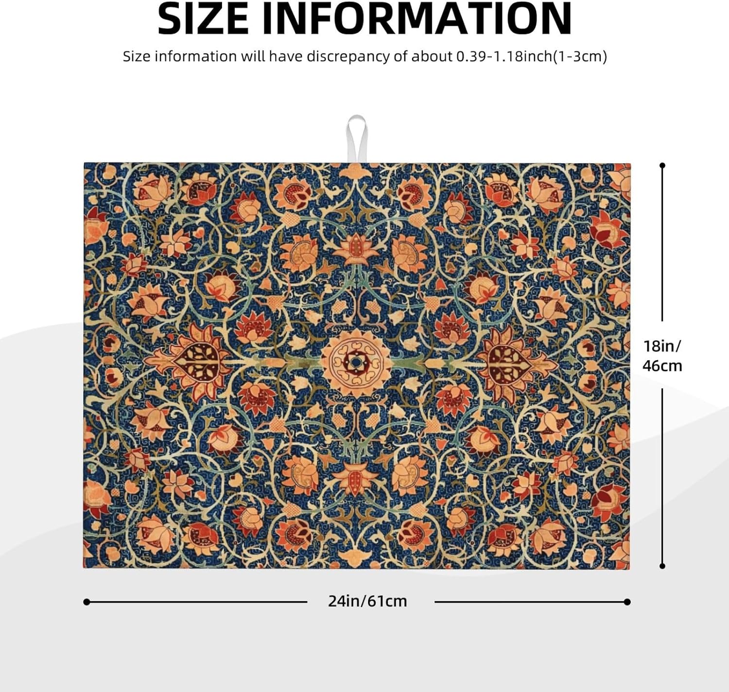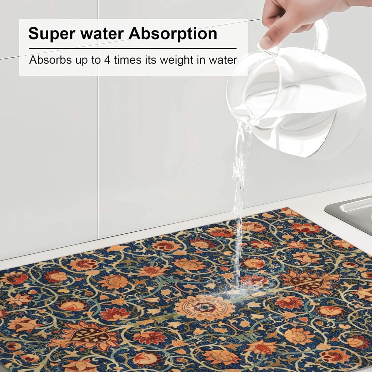 Floral Dish Drying Mat for Kitchen Counter, 18x24 Inch William Morris Boho Style Absorbent Dish Drying Pad Heat Resistant Mat Coffee Bar Mat Dish Drainer Rack Mat