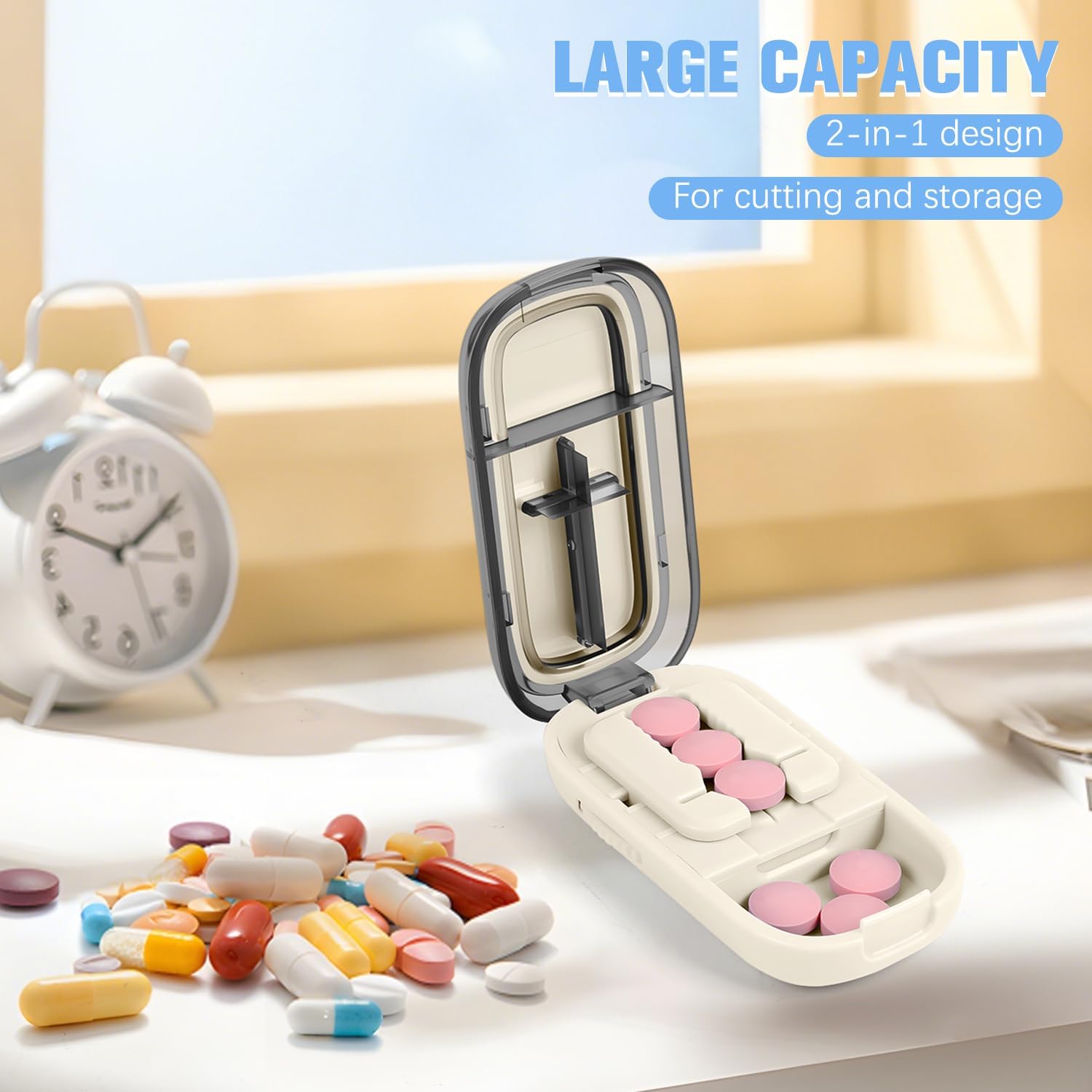 - Centering Device for Accuracy – Features a pill splitter with centering device to securely hold pills in place, preventing uneven cuts and wasted medication
