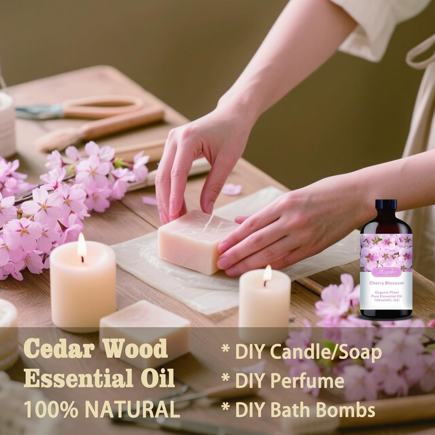 Cherry Blossom Essential Oil-Cherry Blossom Fragrance Oil 4.33oz (130ml)-100% Pure Natural Scent for Diffusers, Candles, Soap Making & Aromatherapy-Relaxing Home & Gift Essential Oil for Bath, Massage