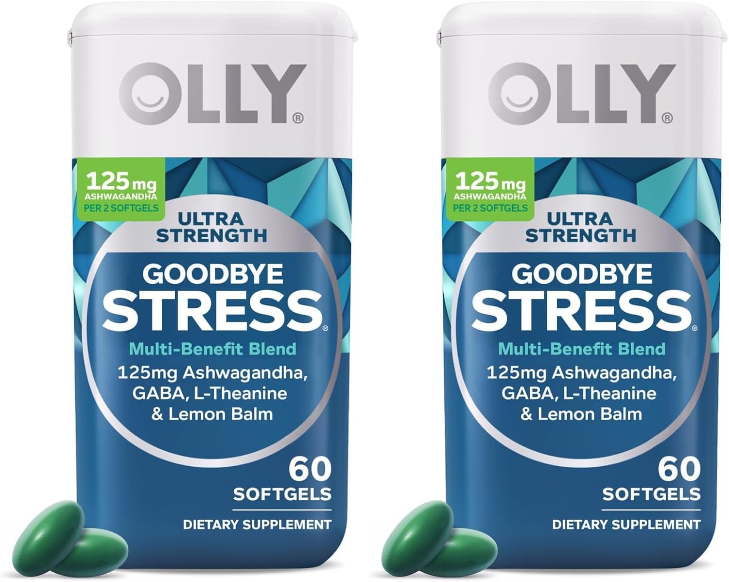 - OLLY ULTRA STRENGTH GOODBYE STRESS ULTRA SOFTGEL: Goodbye Stress Ultra Softgels are blended with powerful botanicals and nutrients to help you stay calm and centered