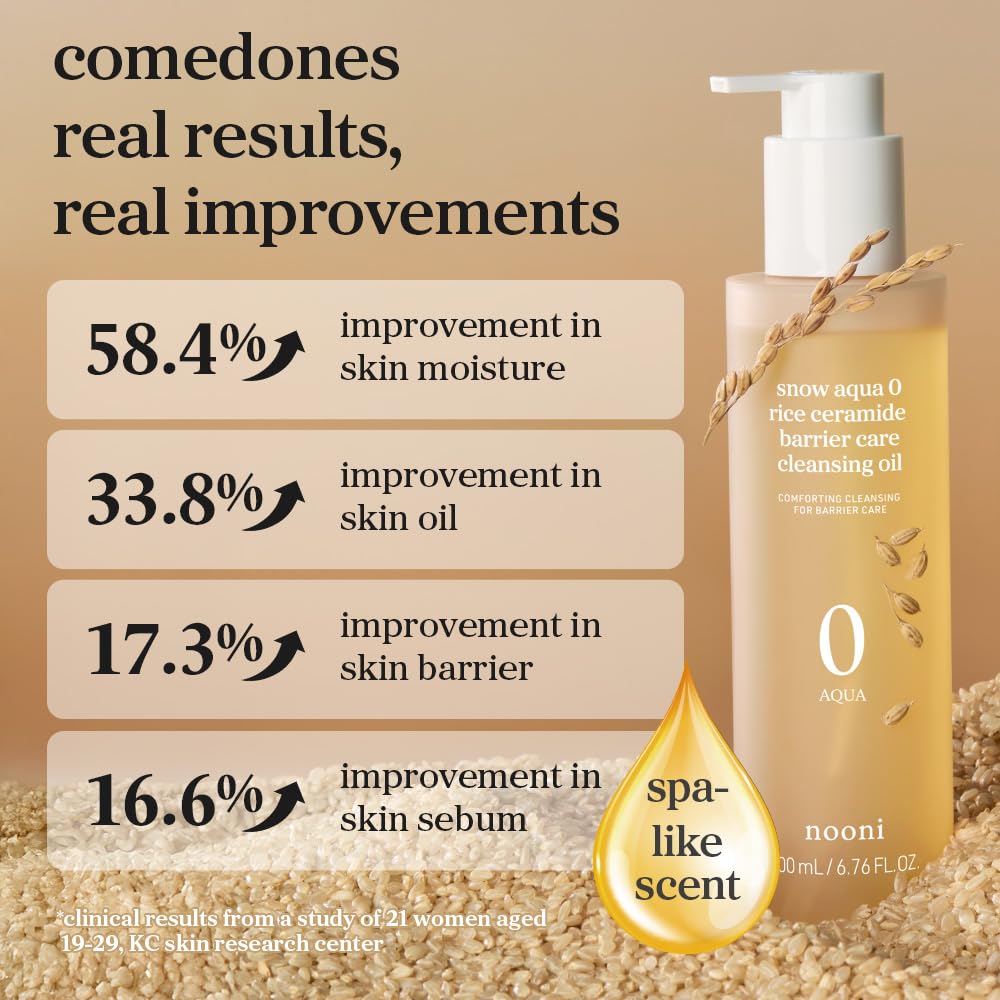 NOONI Korean Cleansing Oil – Snow Aqua 0 Rice Ceramide Barrier Care Cleansing Oil | Makeup Remover, Face Wash, Gentle Facial Cleanser, Pore Care, Korean Skin Care, Vegan, 6.76 Fl Oz
