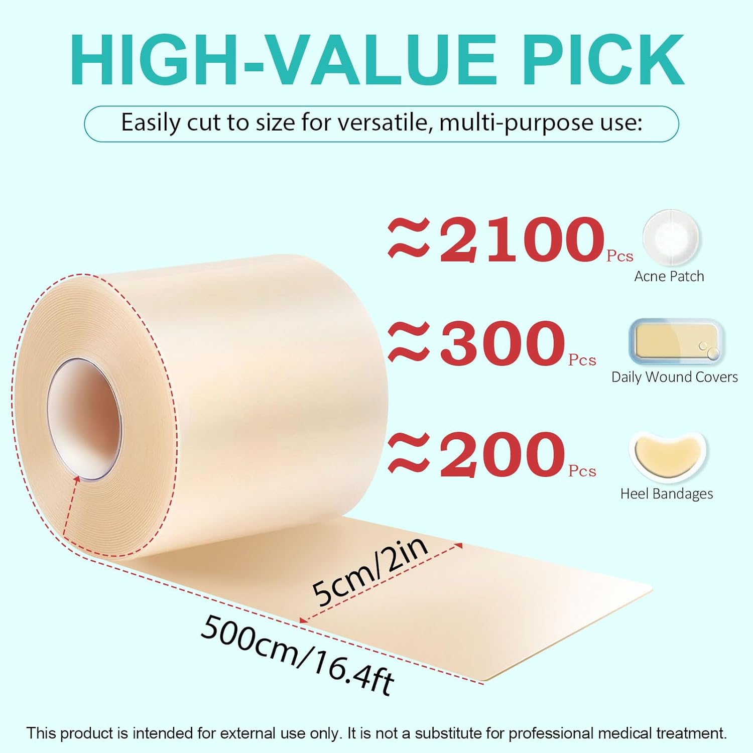 Hydrocolloid Roll, Medical-Grade Hydrocolloid Bandages for Wound Care, Extra Large Hydrocolloid Patch Bandages with Self-Adhesive, Cut-to-Size, Flexible Waterproof,First Aid Kit Essential(2in*16.4ft)